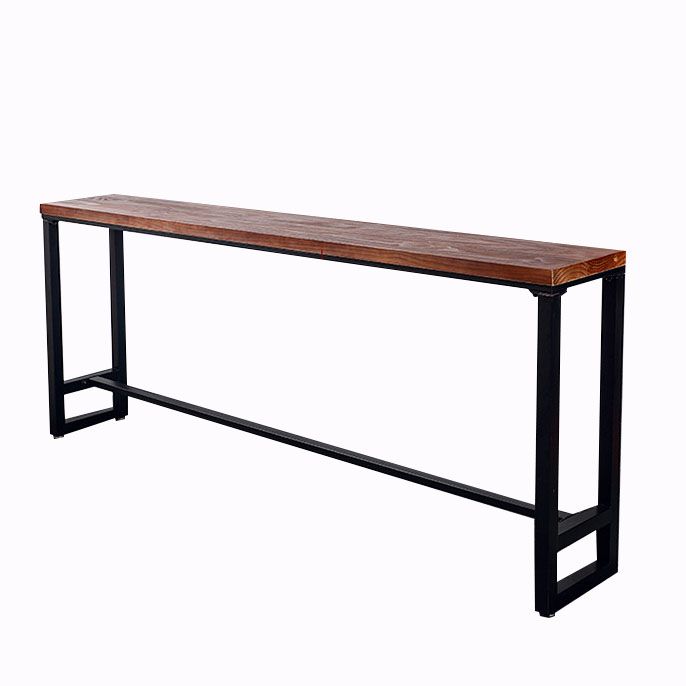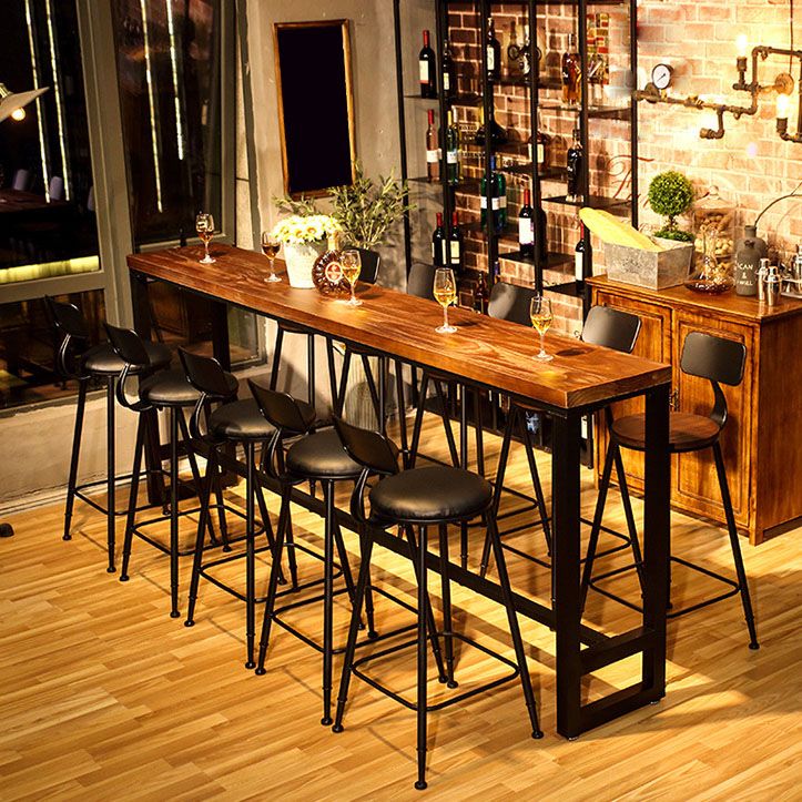 Industrial Metal Frame Pub Table with Trestle Brown Pine Wood Top Bar Table
