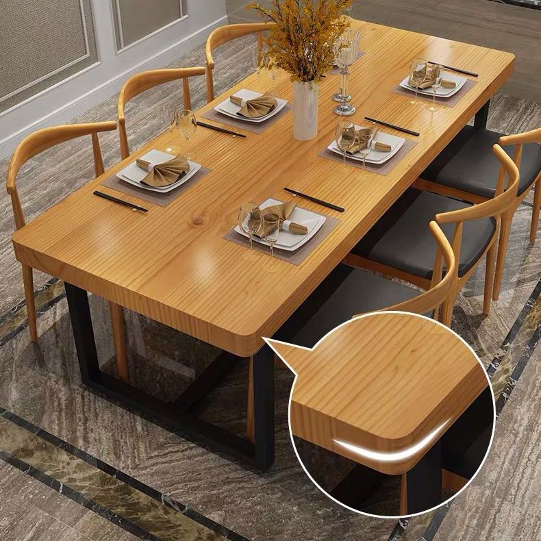 Industrial Rectangle Dining Table Set 1/2/5/6/7 Pieces Natural Solid Wood Dinette Set