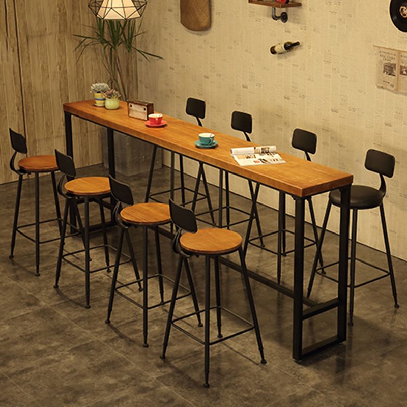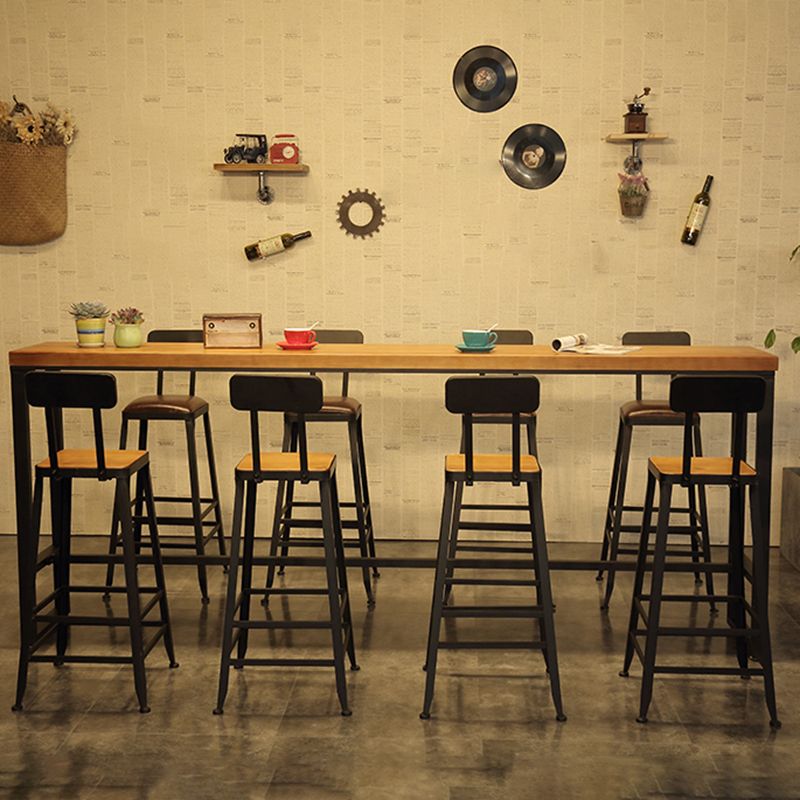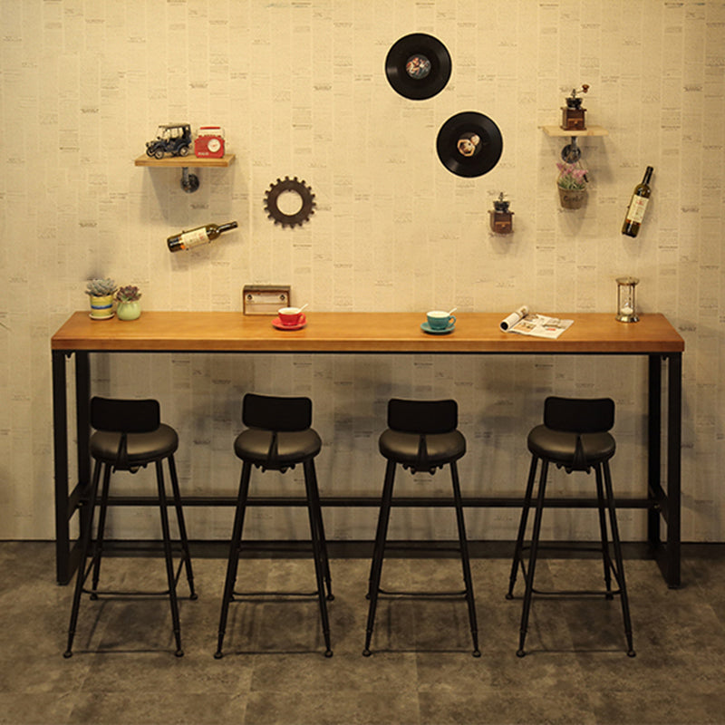 Industrial Style Rectangle Bar Table Solid Wood Bistro Bar Desk with Footrest