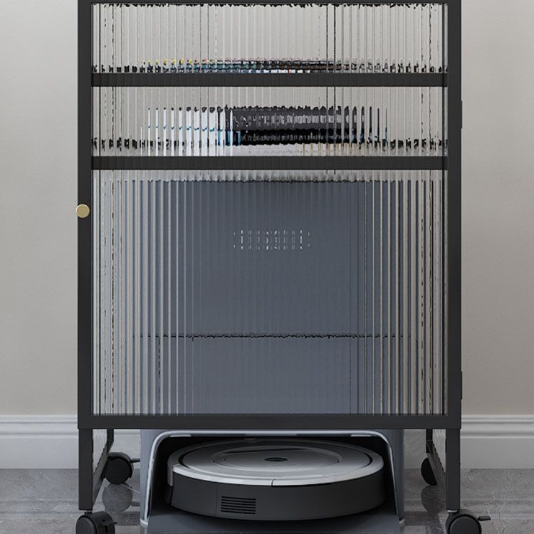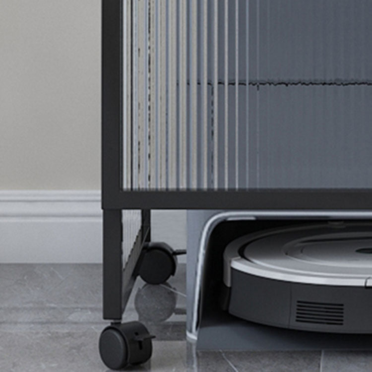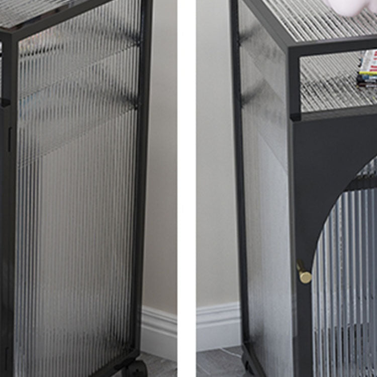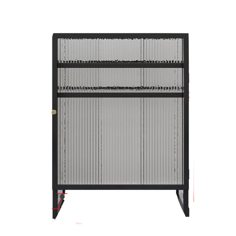 Knobs Scratch Resistant Modern Iron Accent Cabinet with Glass Top