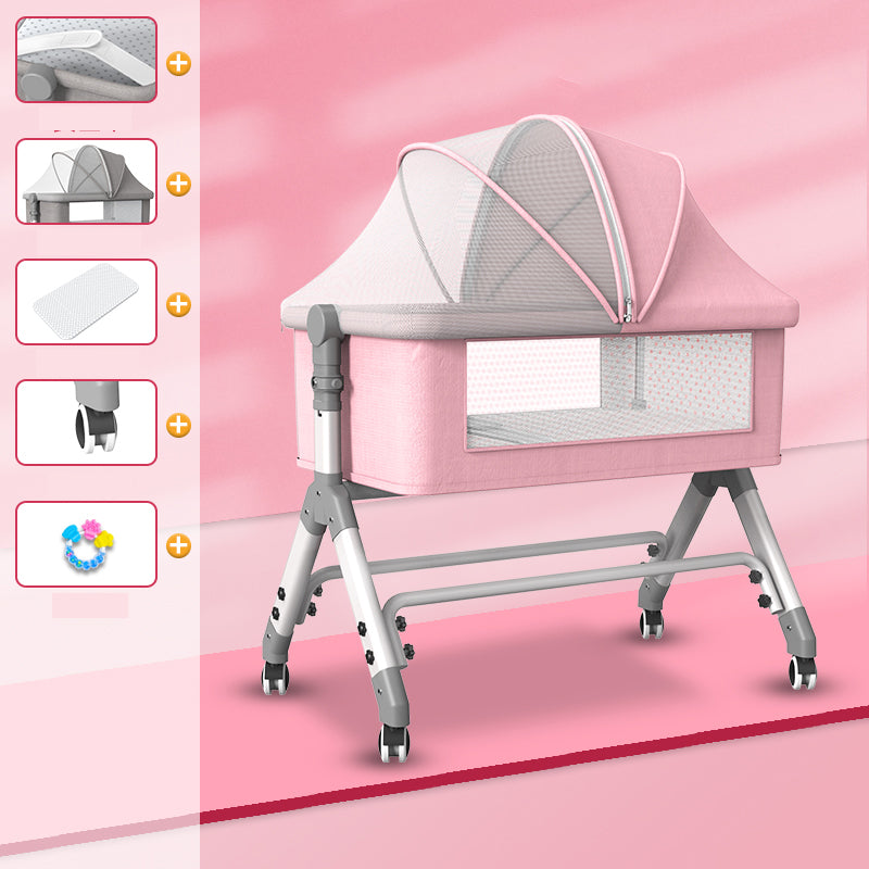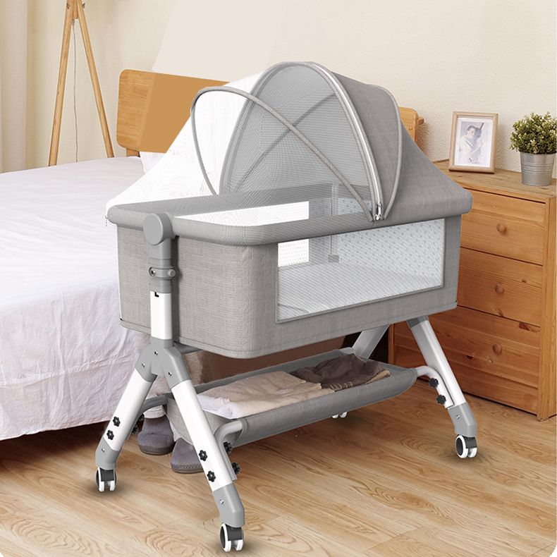 Metal Adjustable Bedside Bassinet Gliding Rectangle Crib Cradle for Toddler
