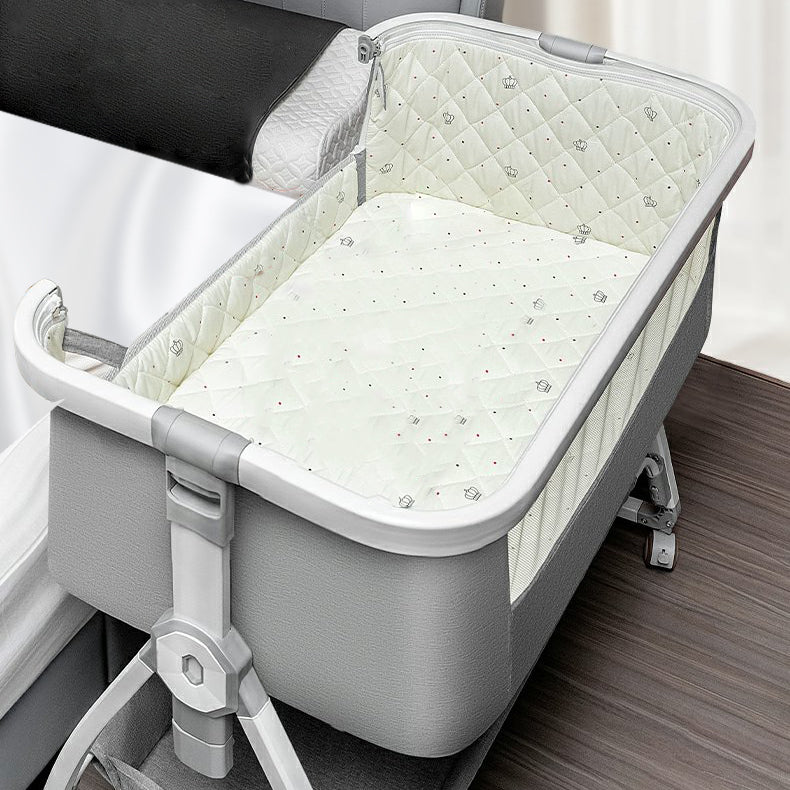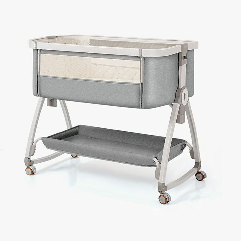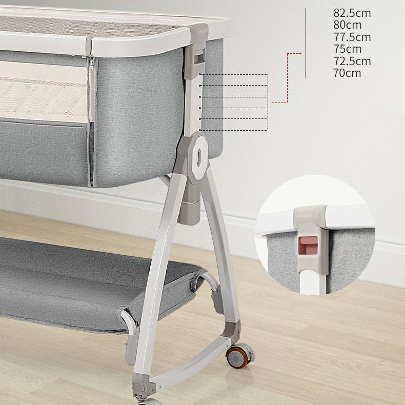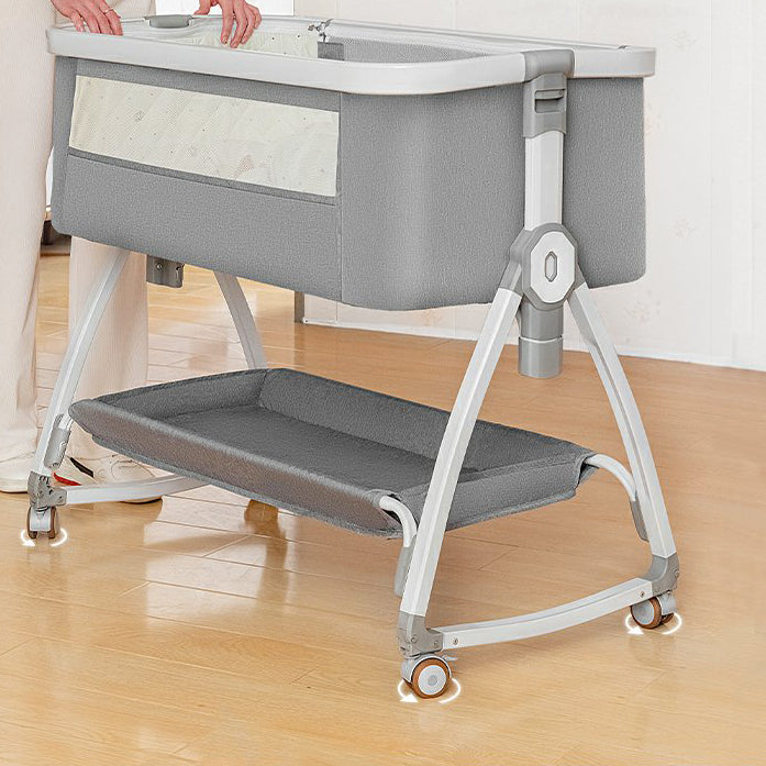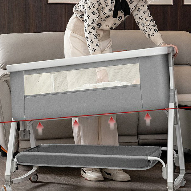 Metal Rectangle Folding Bedside Crib Gliding and Rocking Crib Cradle for Baby