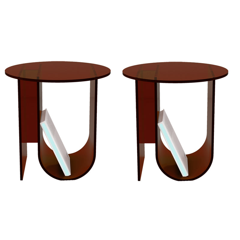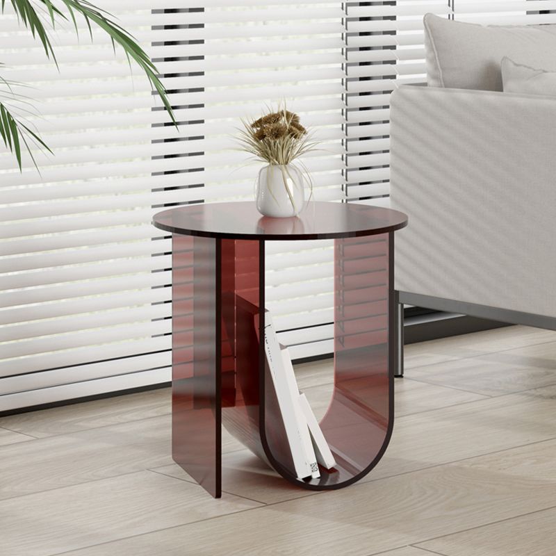 Modern Acrylic End Slide Table Round Corner Table with Storage