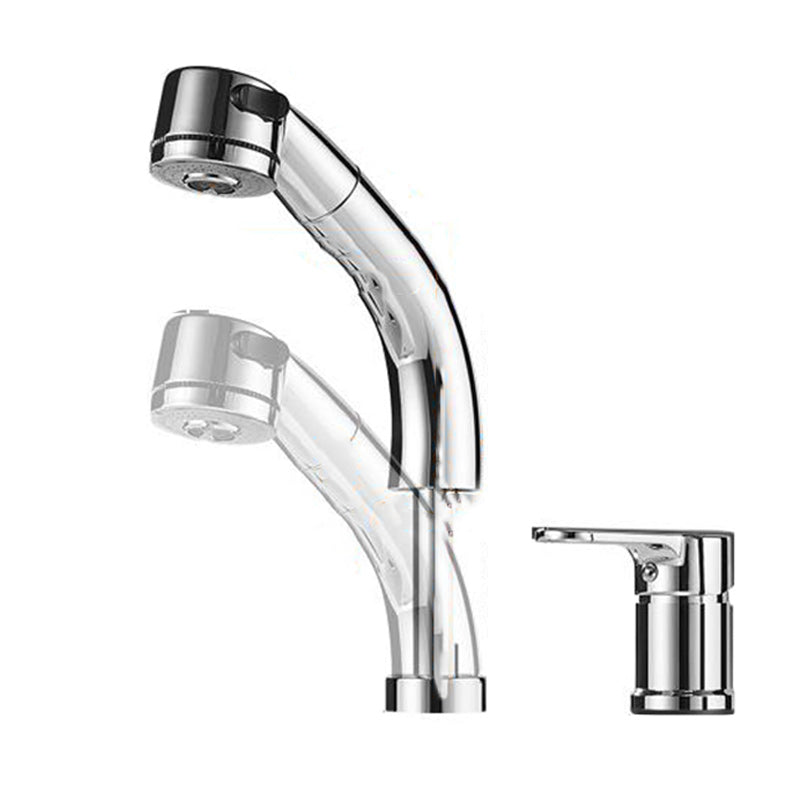 Modern Chrome Sink Faucet Brass Bathroom Low Arc Lifting Faucet