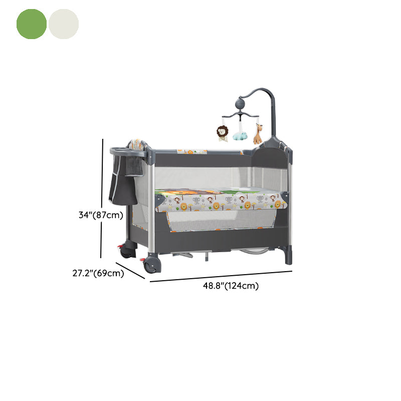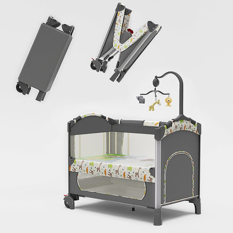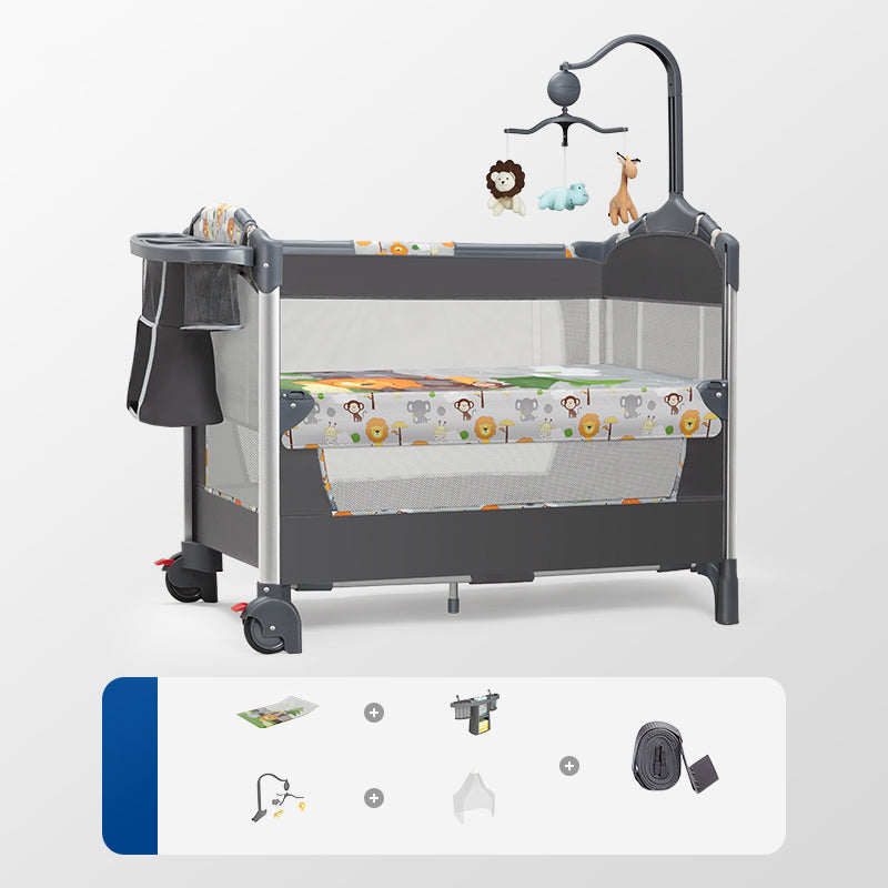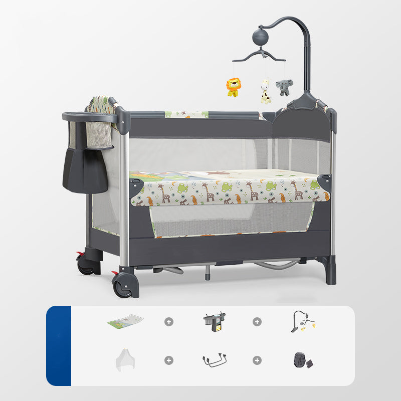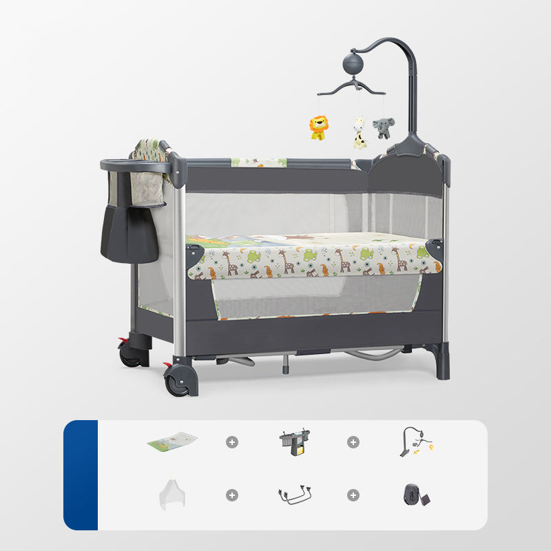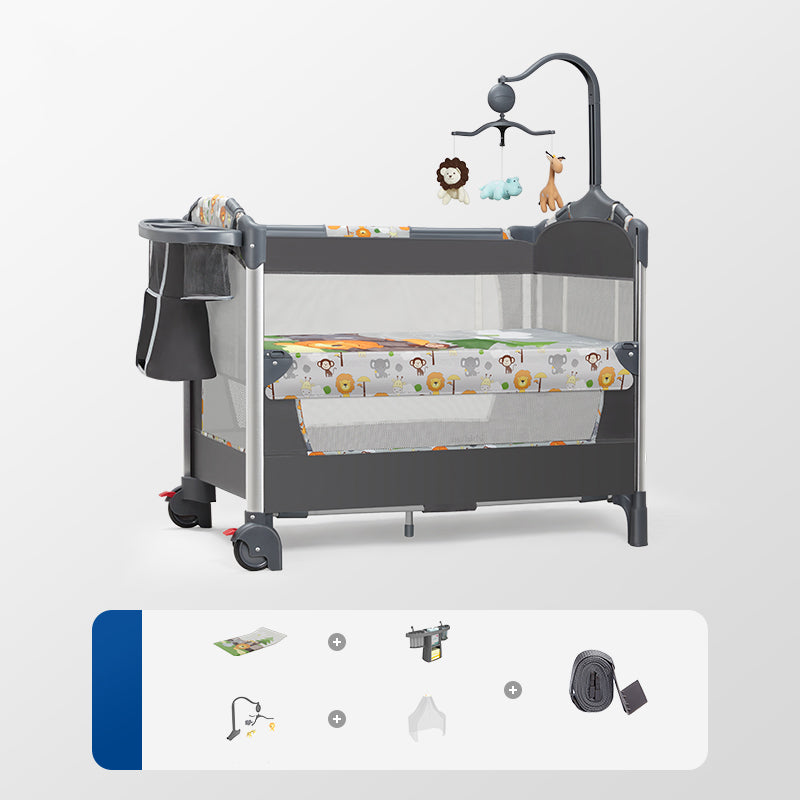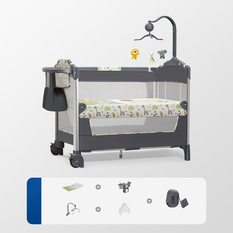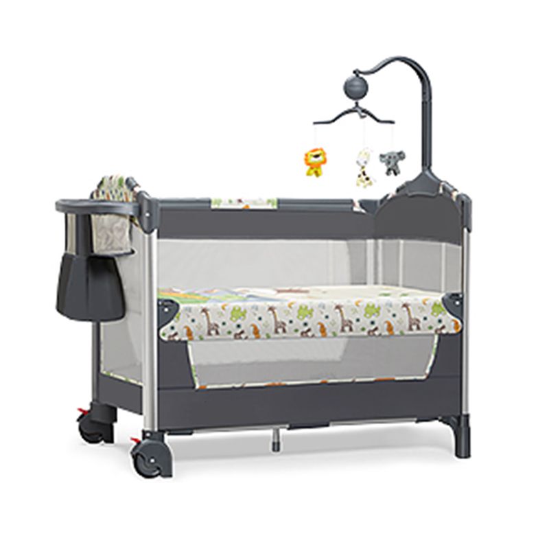 Modern Rectangle Crib Cradle Dark Gray Crib Cradle with 2 Wheels