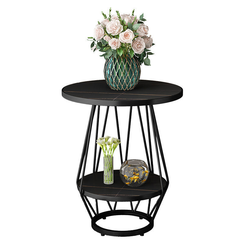 Modern Round Side Table 24.4-inch Gold/Black Metal Frame End Table