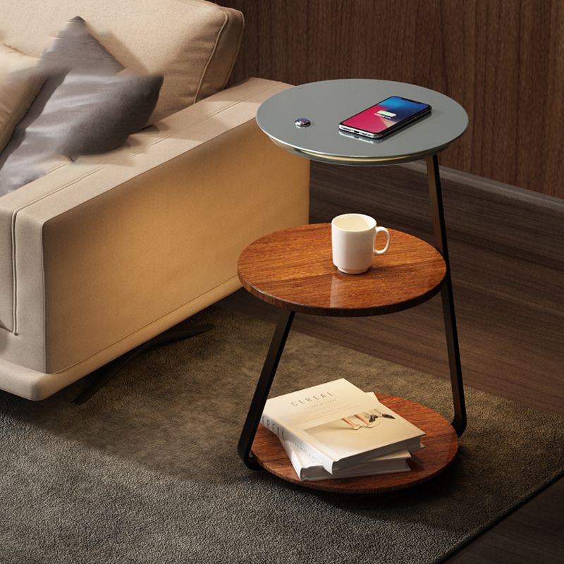 Modern Solid Wood Round 3-Tier Living Room Accent Side Table