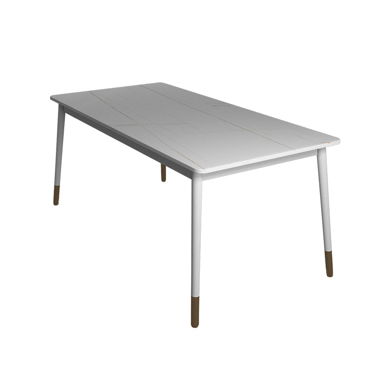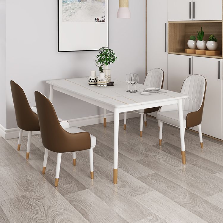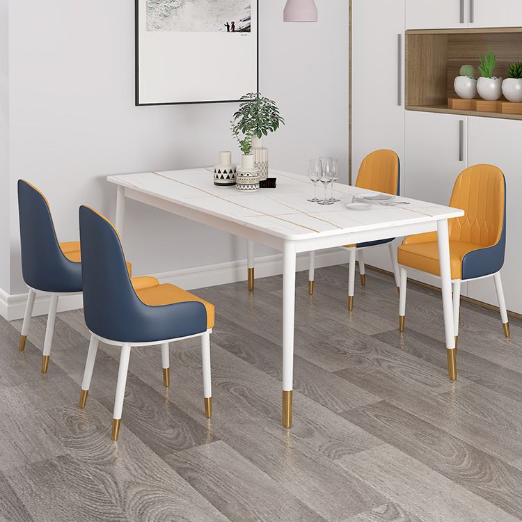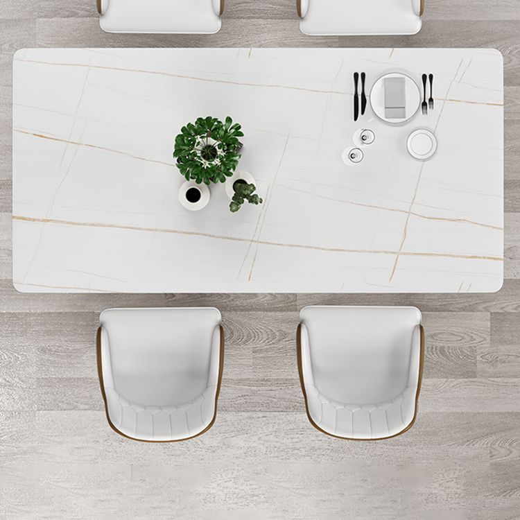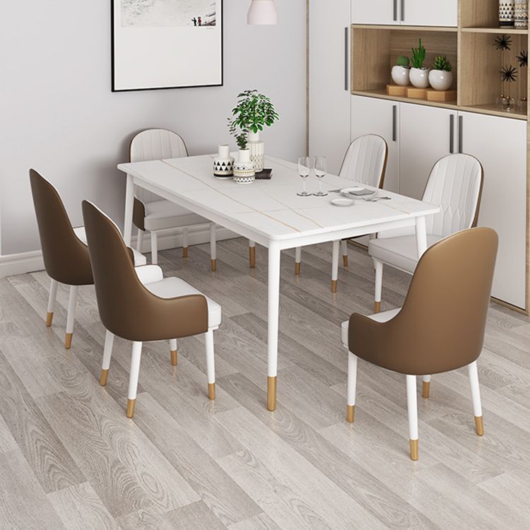 Modern White Iron Dinette Set 1/2/5/7 Pieces Rectangle Sintered Stone Top Dining Table Set