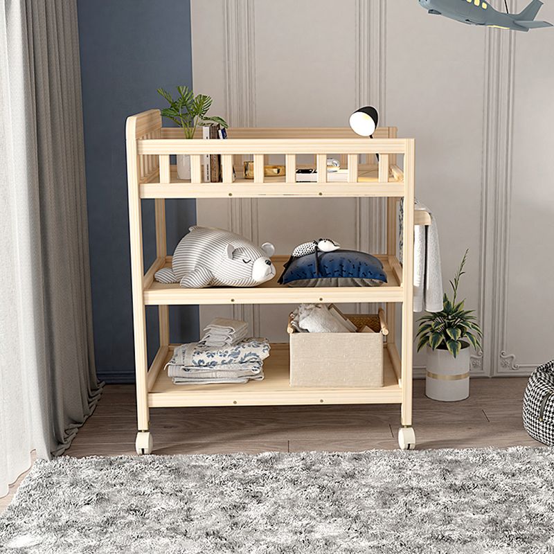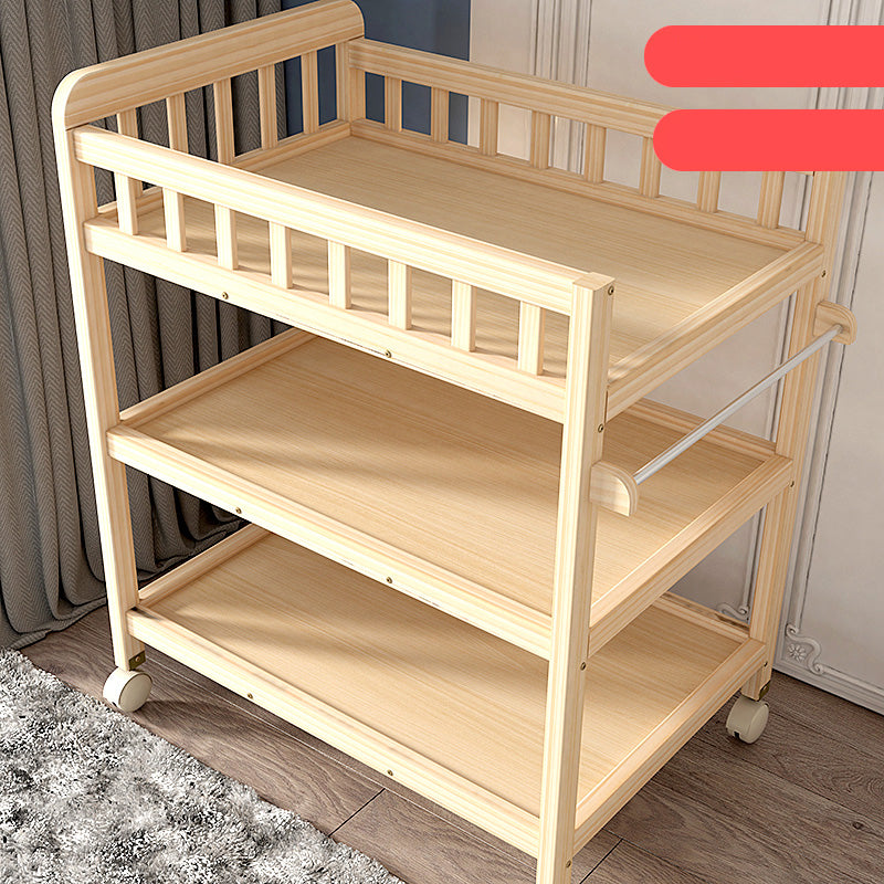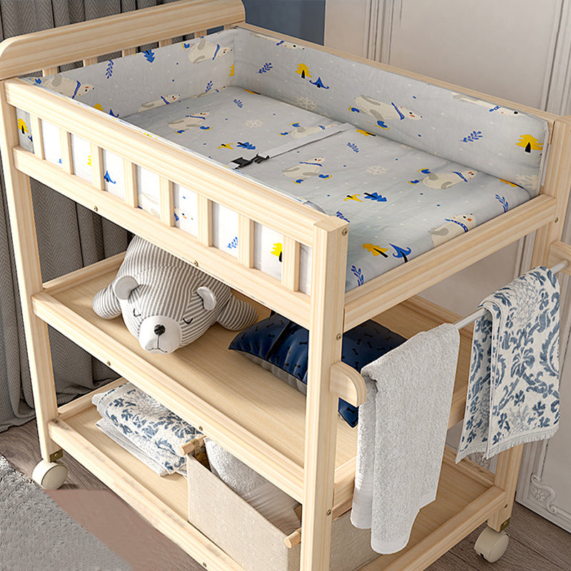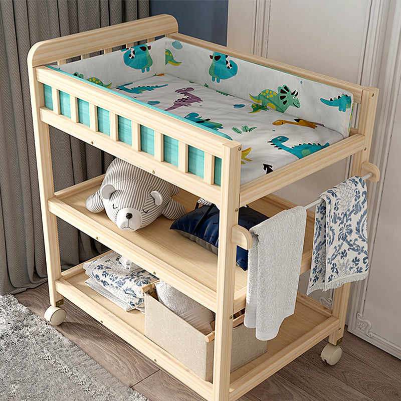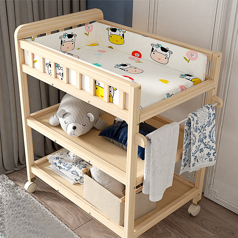 Modern Wooden Changing Table Safety Rails Baby Changing Table with 4 Wheels