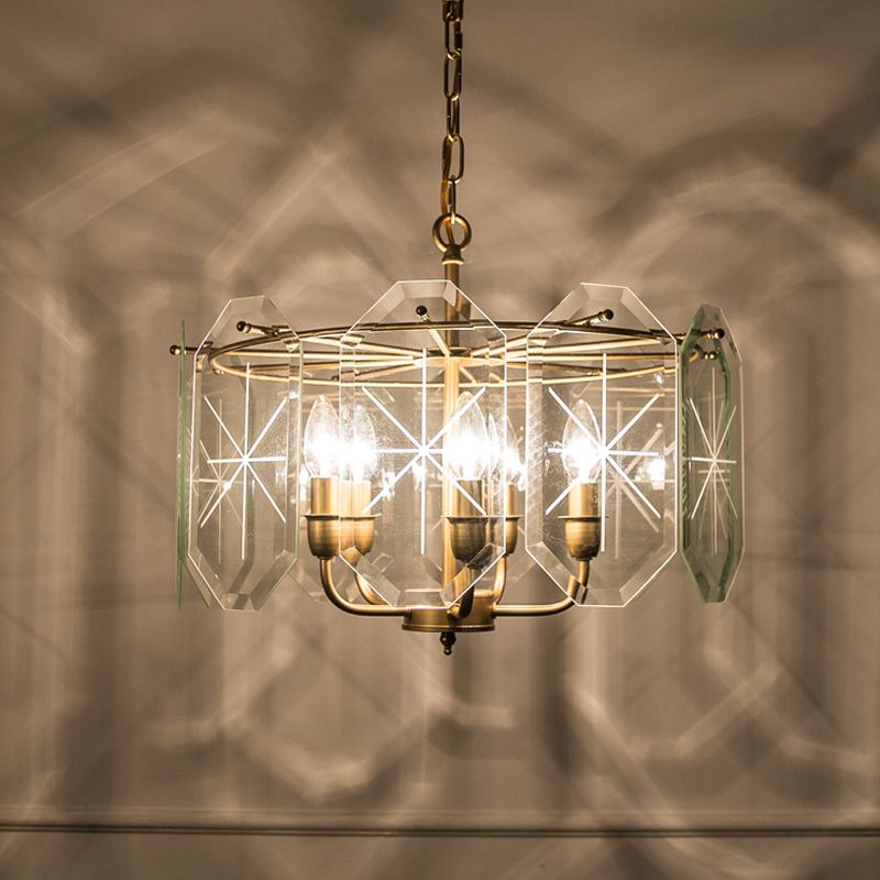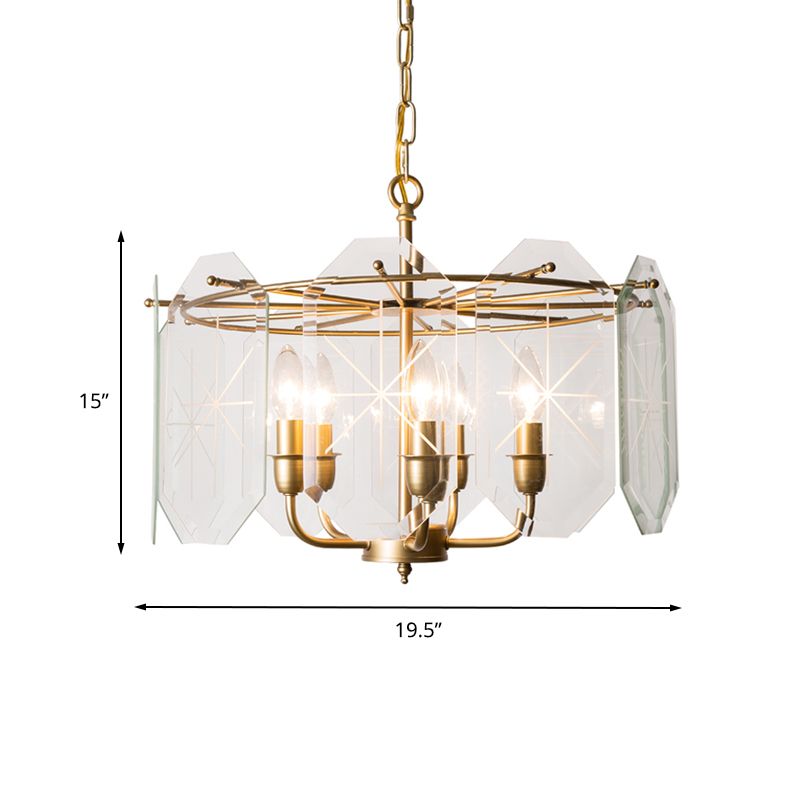 Modernism Cylinder Ceiling Chandelier Clear Glass 5 Heads Hanging Light Fixture in Brass for Restaurant