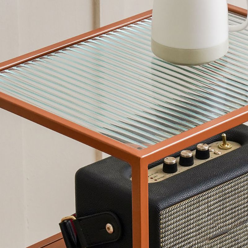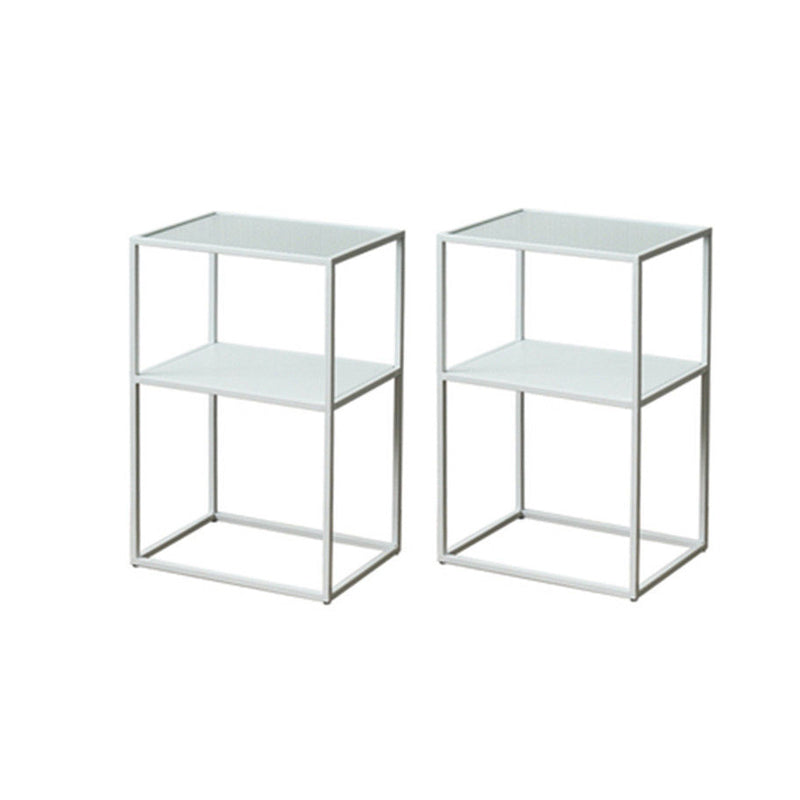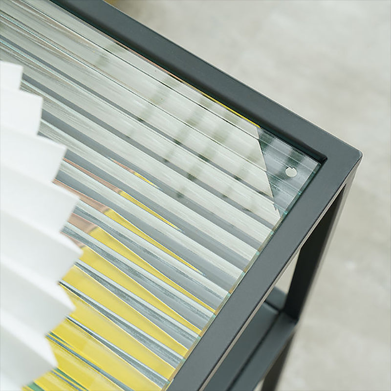 Modernistic Double Tier Rectangular with Storage Frame Glass Side Table