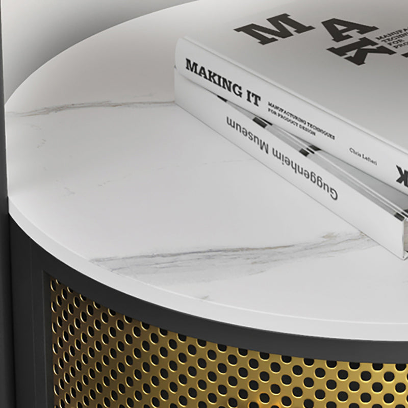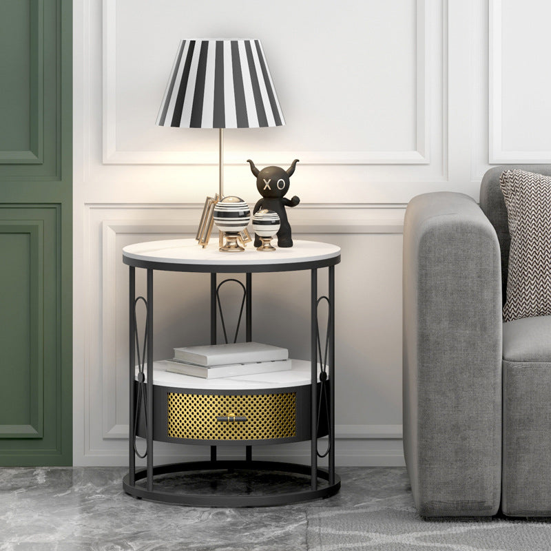 Modernistic Metal Frame 1-Drawer Round Living Room Side Table