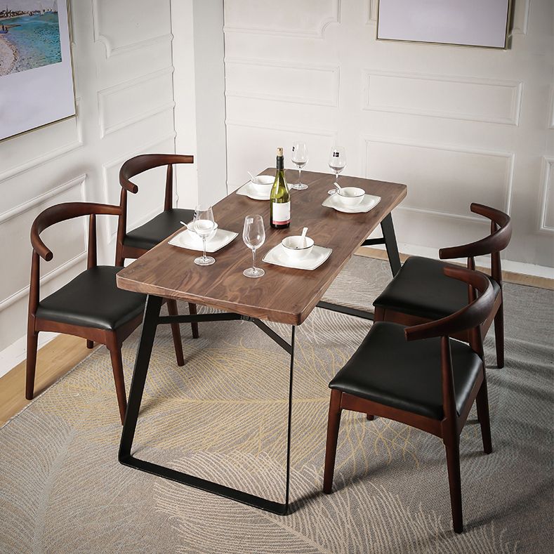 Natural and Black Dining Table Set 1/2/3/5/7 Pieces Rectangle Industrial Dinette Set
