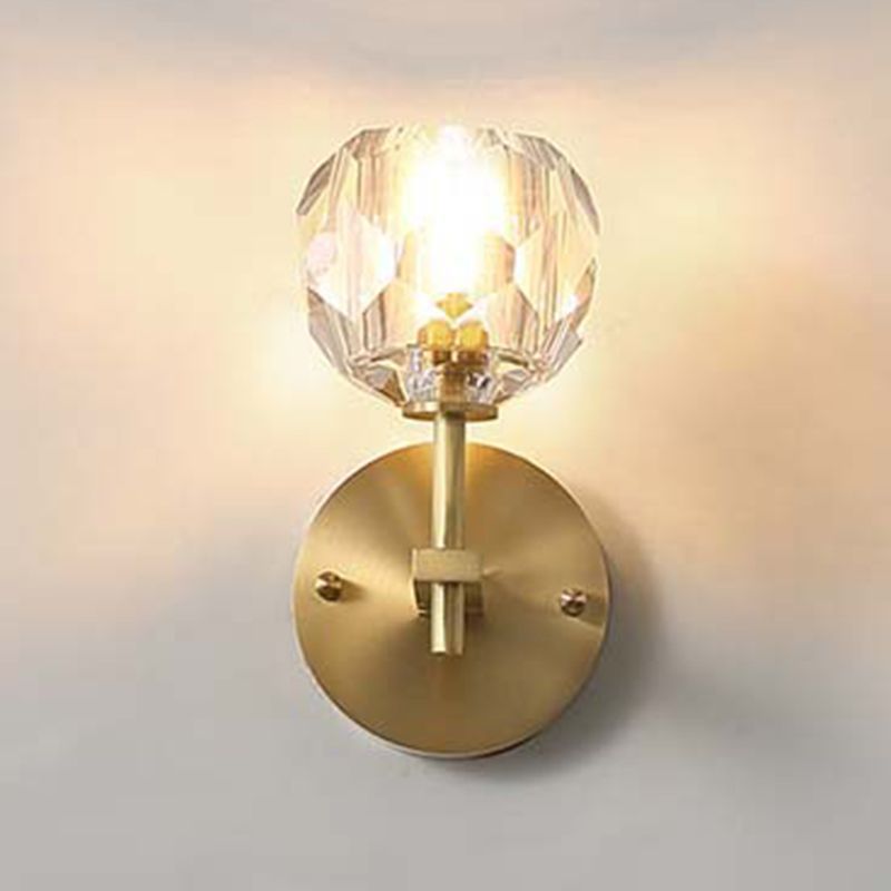 Nordic Brass Wall Light Globe Gold 4.5" Wide Wall Sconce with Crystal for Living Room