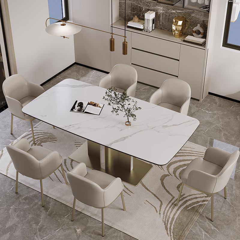 Nordic Glam Sintered Stone Rectangle Table Set 1/4/5/7 Pieces Dining Set for Home