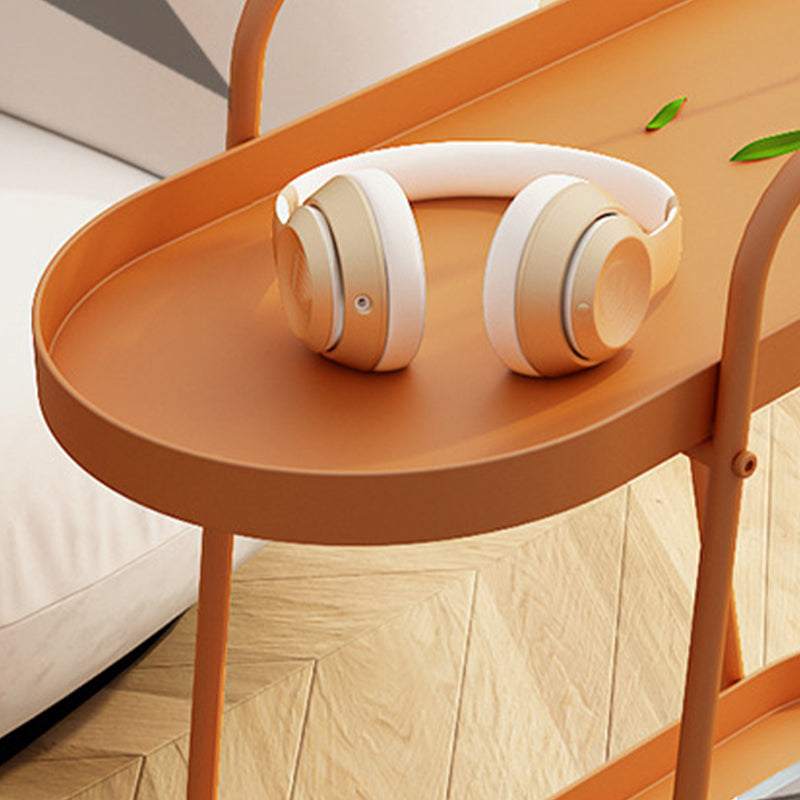 Oval 2-Tier End Table with Casters Mid-Century Modern Metal Side Table