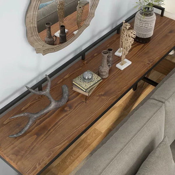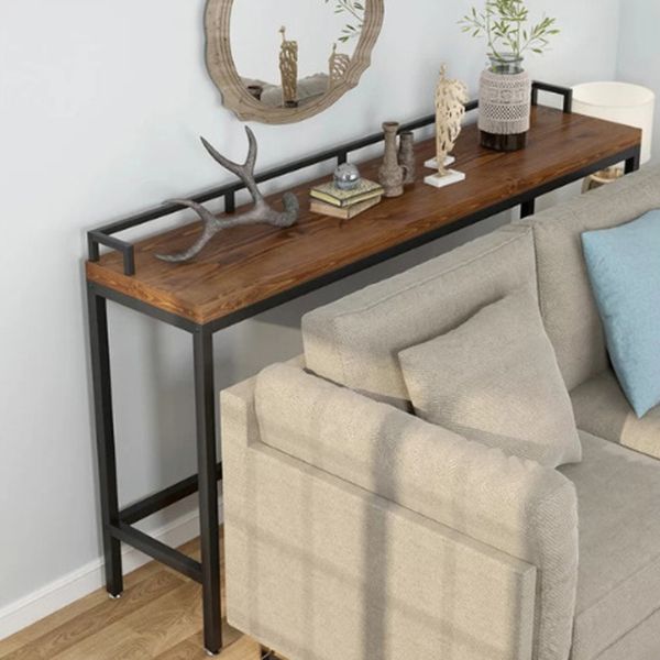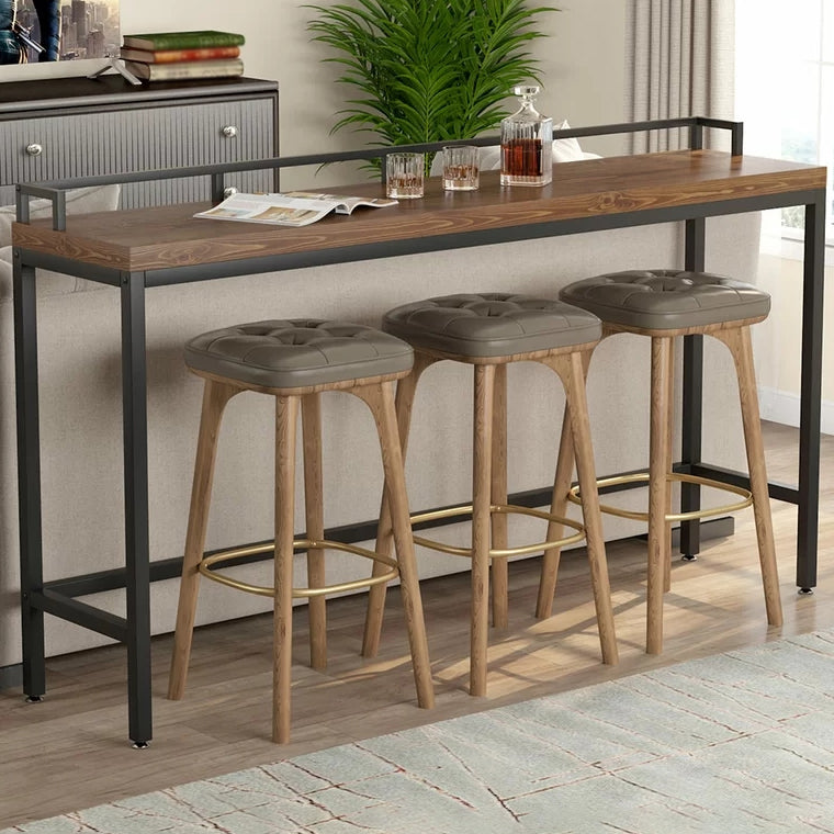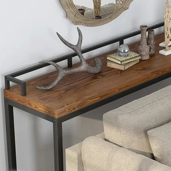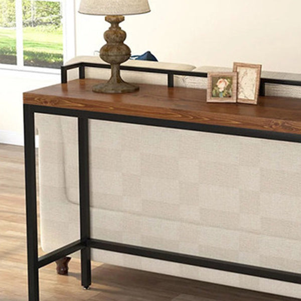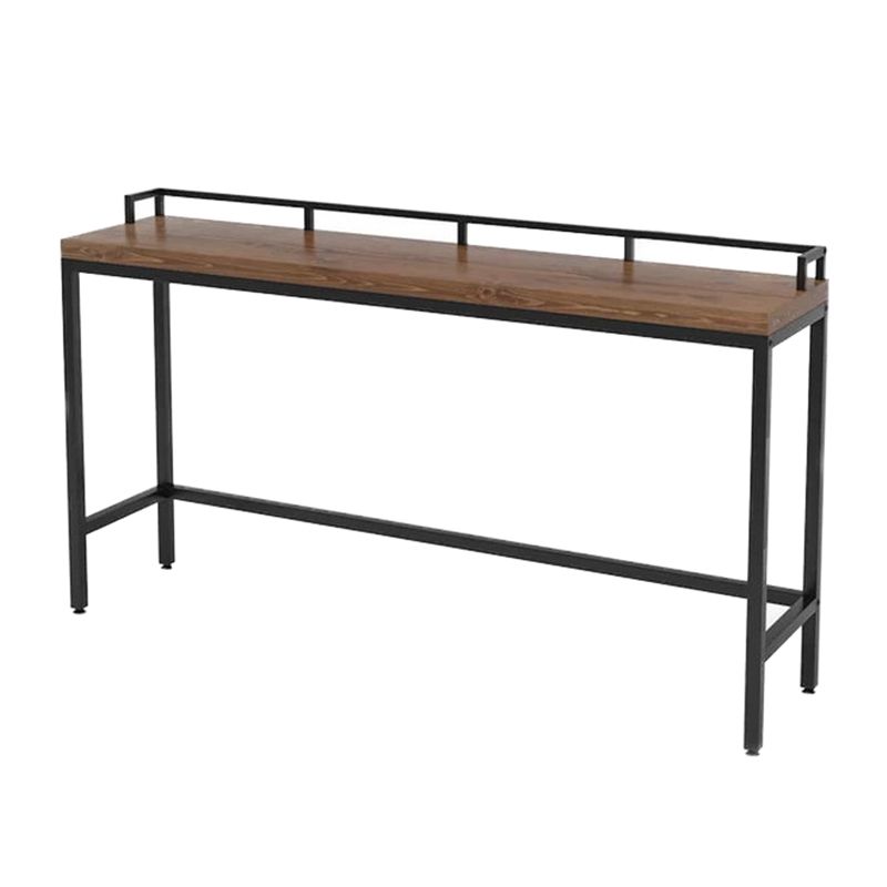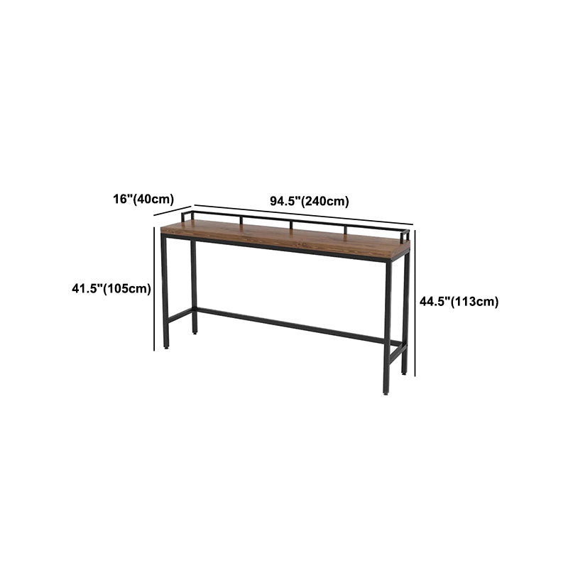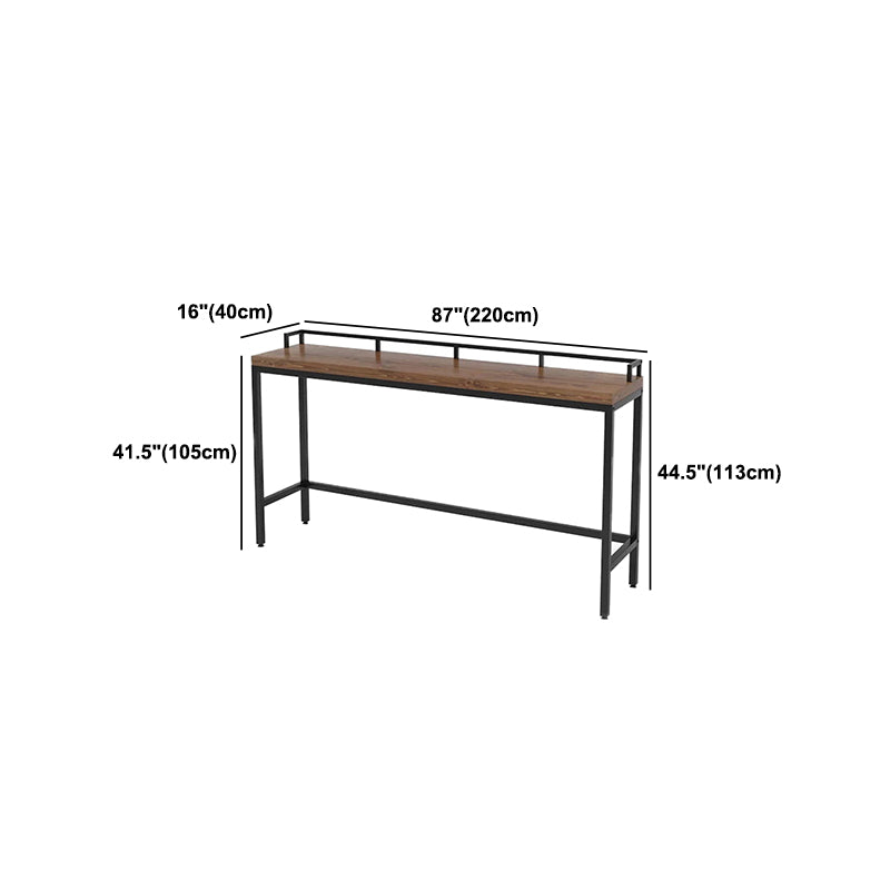 Pine Wood Top Bar Dining Table Industrial Bar Table with Trestle Base in Black