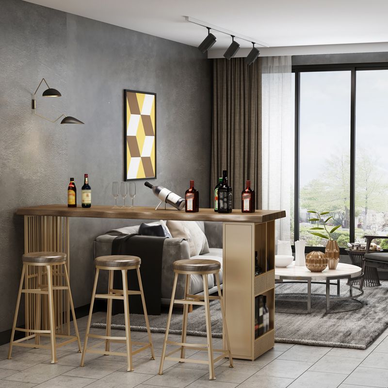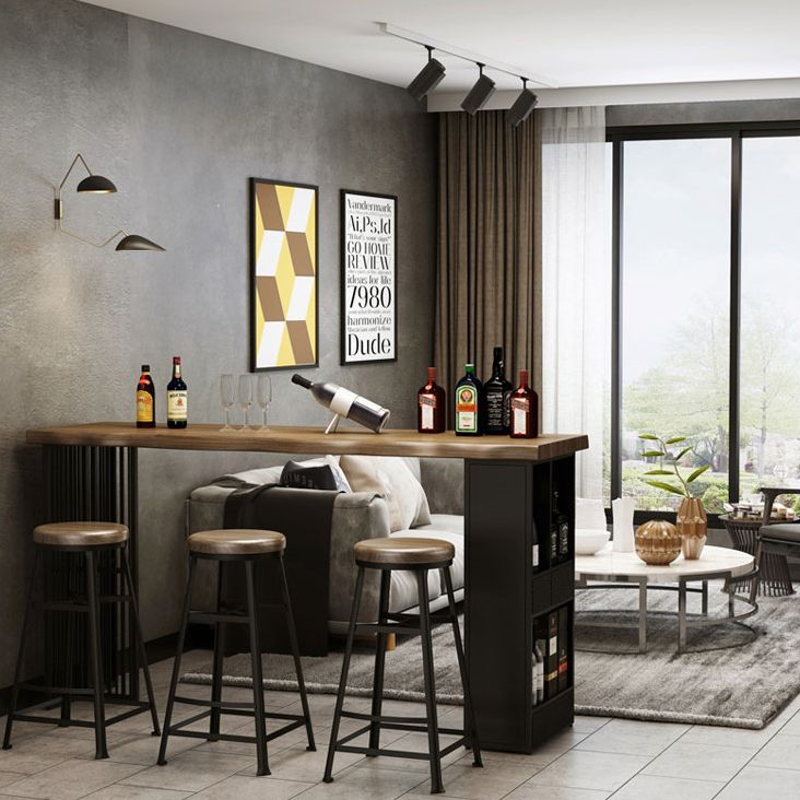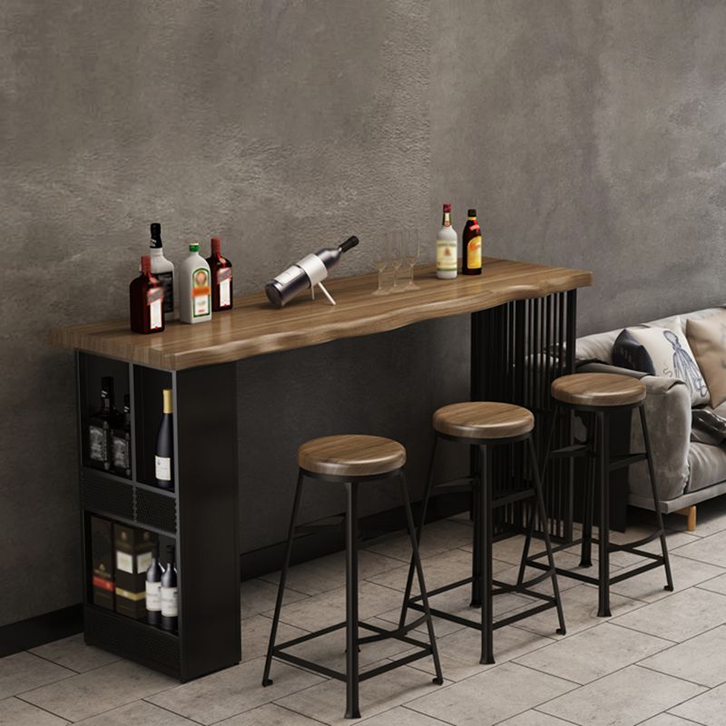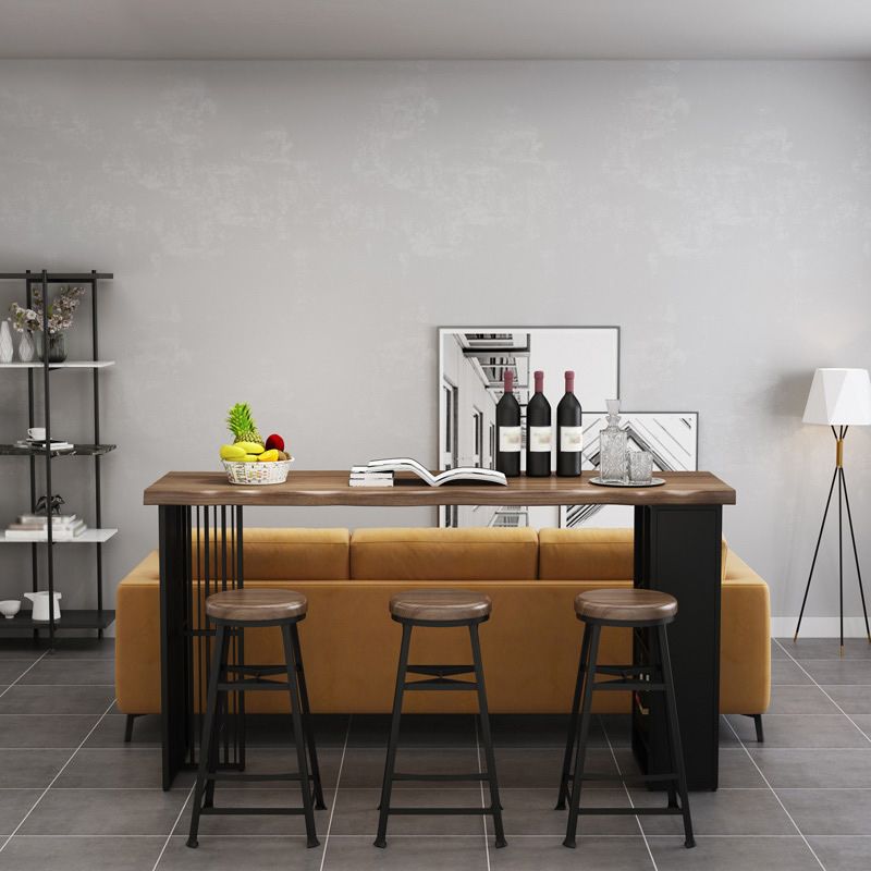 Pine Wood Top Rectangle Bar Table Industrial Bar Table with Double Pedestal in Black