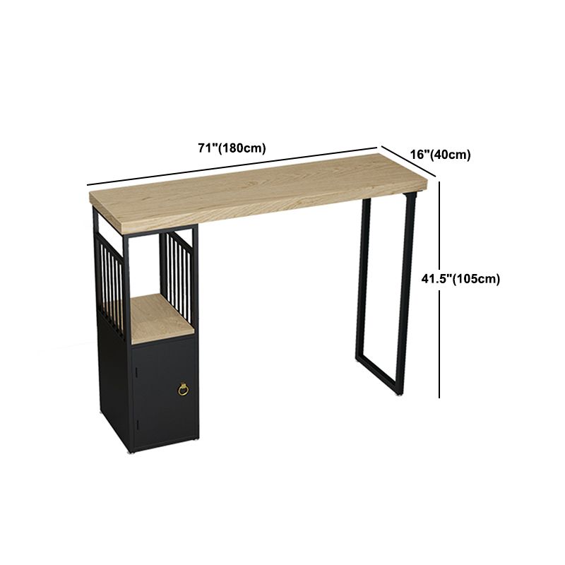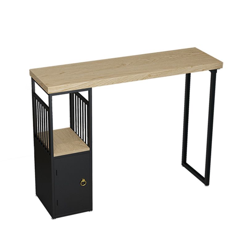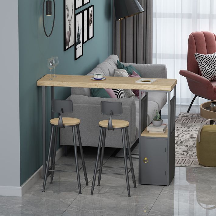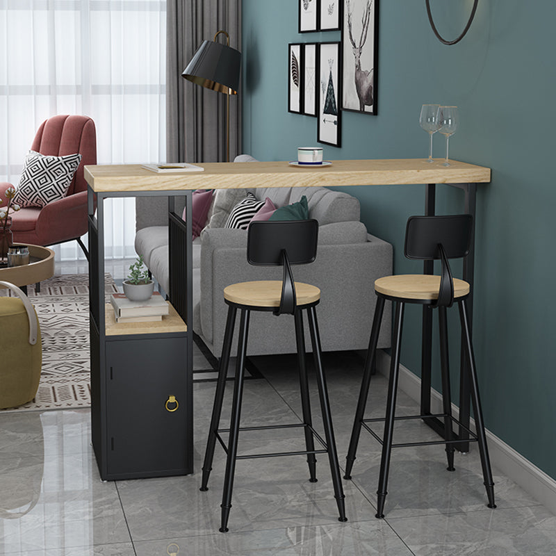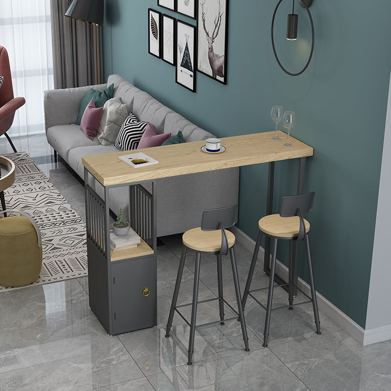 Pine Wood Top Rectangle Bar Table Industrial Pub Table with Storage Double Pedestal