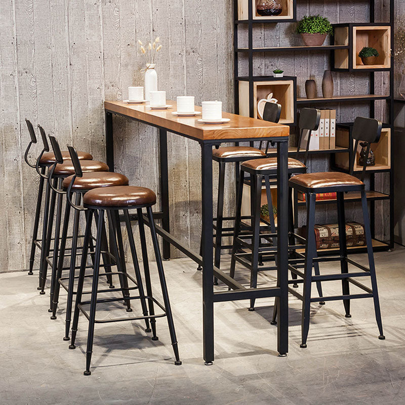 Pine Wood Top Rectangular Bar Table Industrial Pub Table with Metal Trestle Base