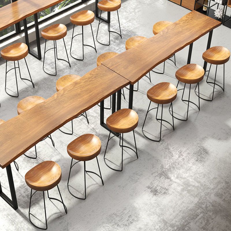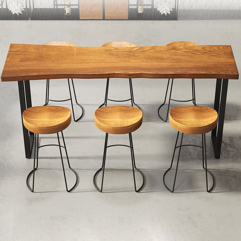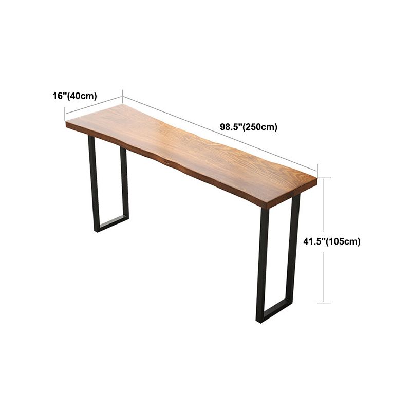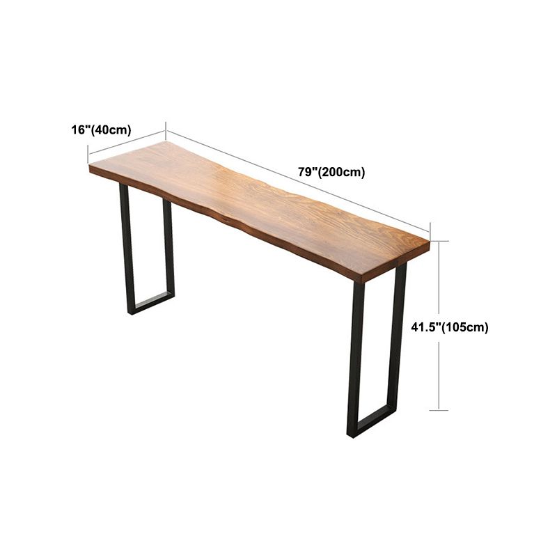 Pine Wood Top Rectangular Pub Table Modern Bar Table with Double Pedestal in Black