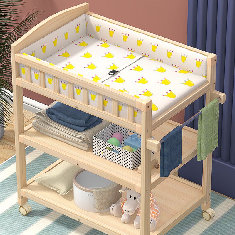 Pine Wooden Baby Changing Table with Storage Shelf Flat Top Changing Table with Pad