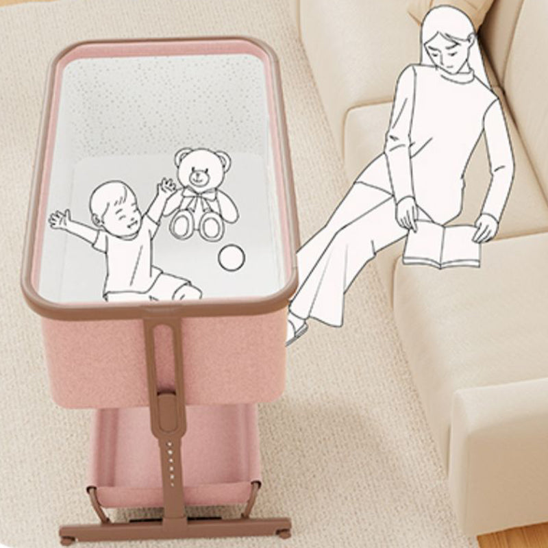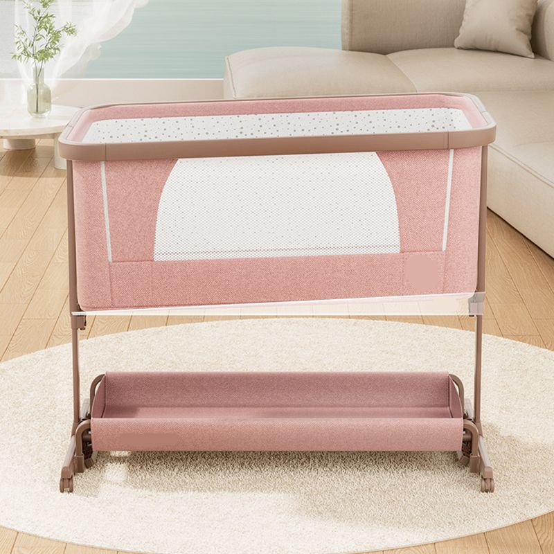 Pink and Gray Crib Cradle Foldable and Height Adjustable Crib Cradle