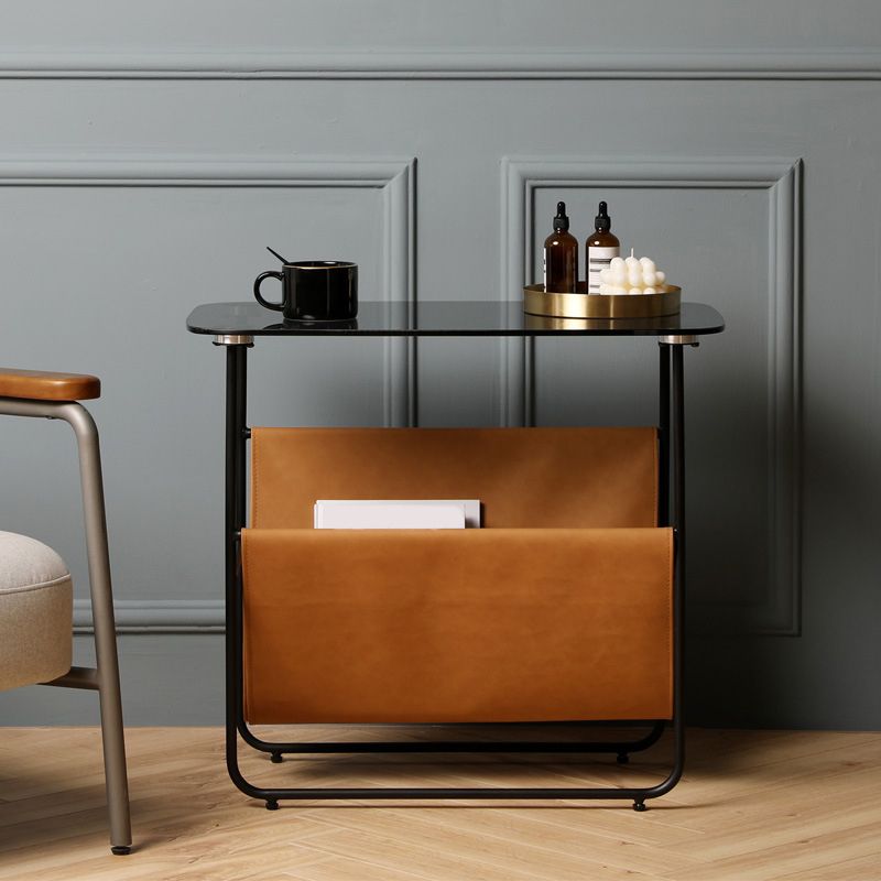 Rectangular Glass Top End Table Modern 23.22" Tall Storage Side Table