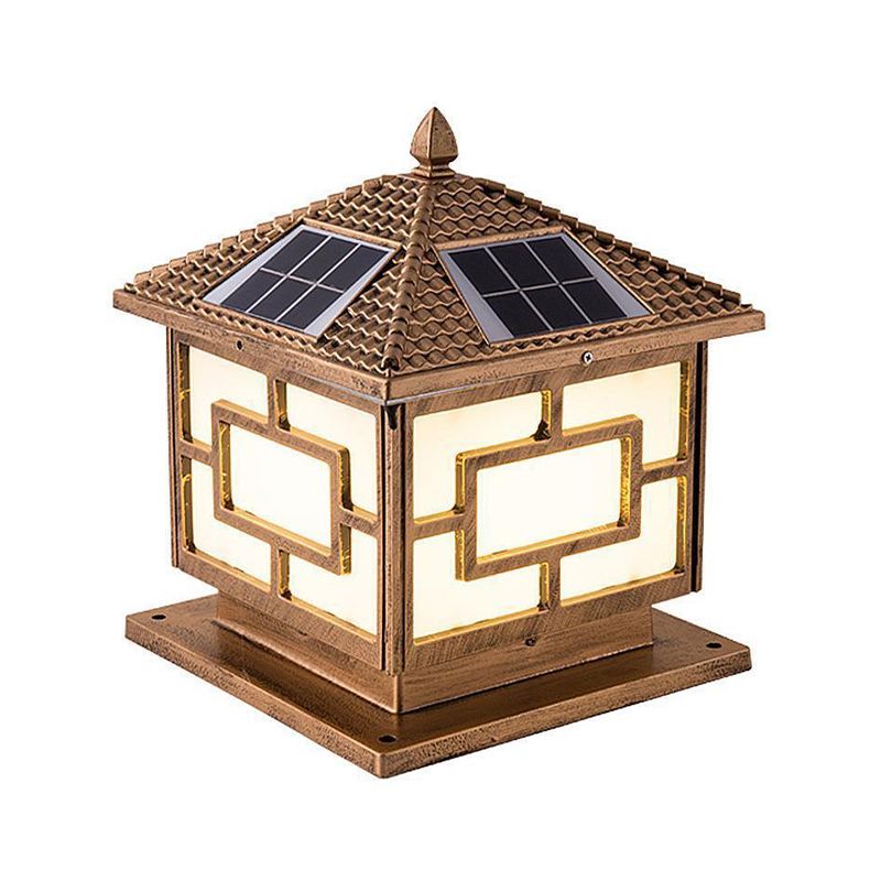 Rectangular Shape Metal Pillar Lamp Modern Style 1 Light Solar Outdoor Light