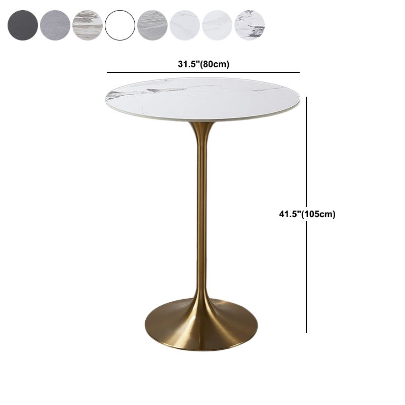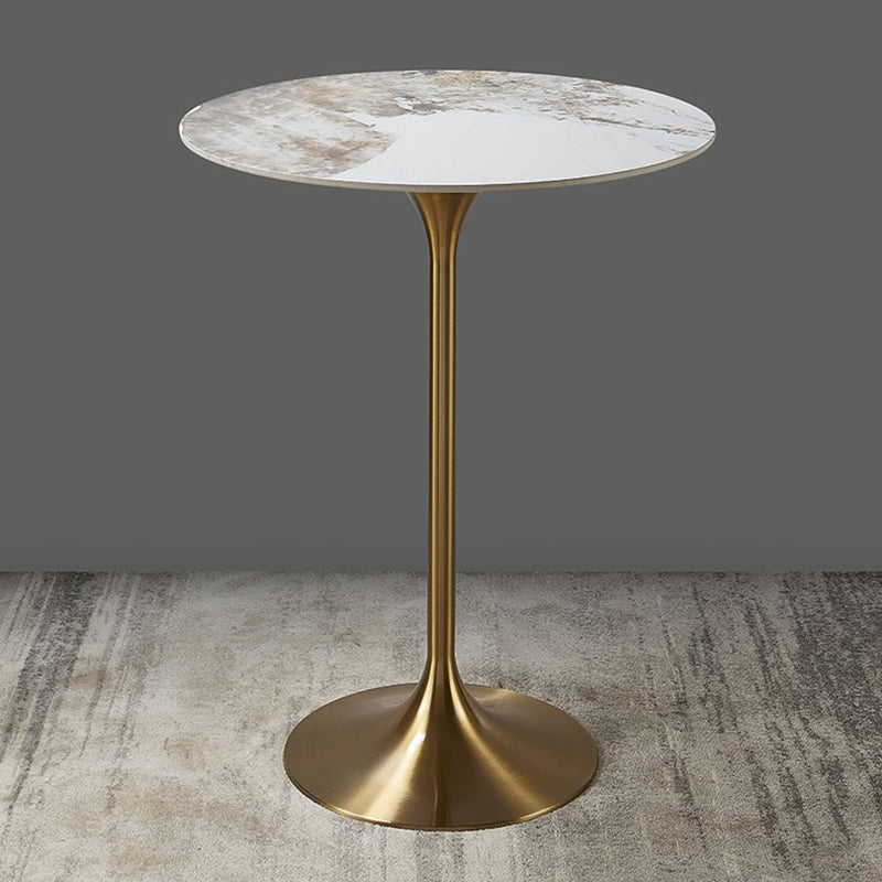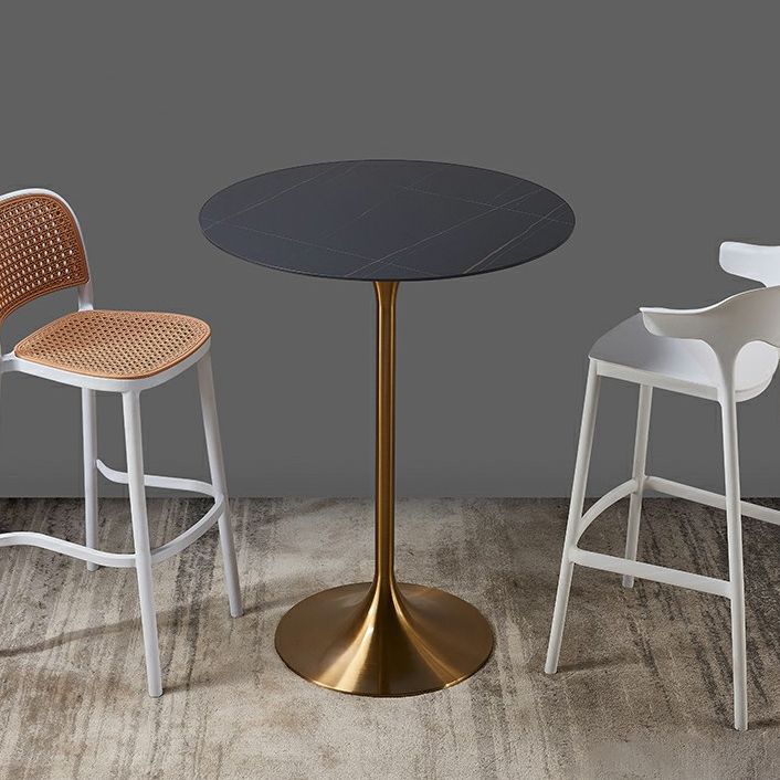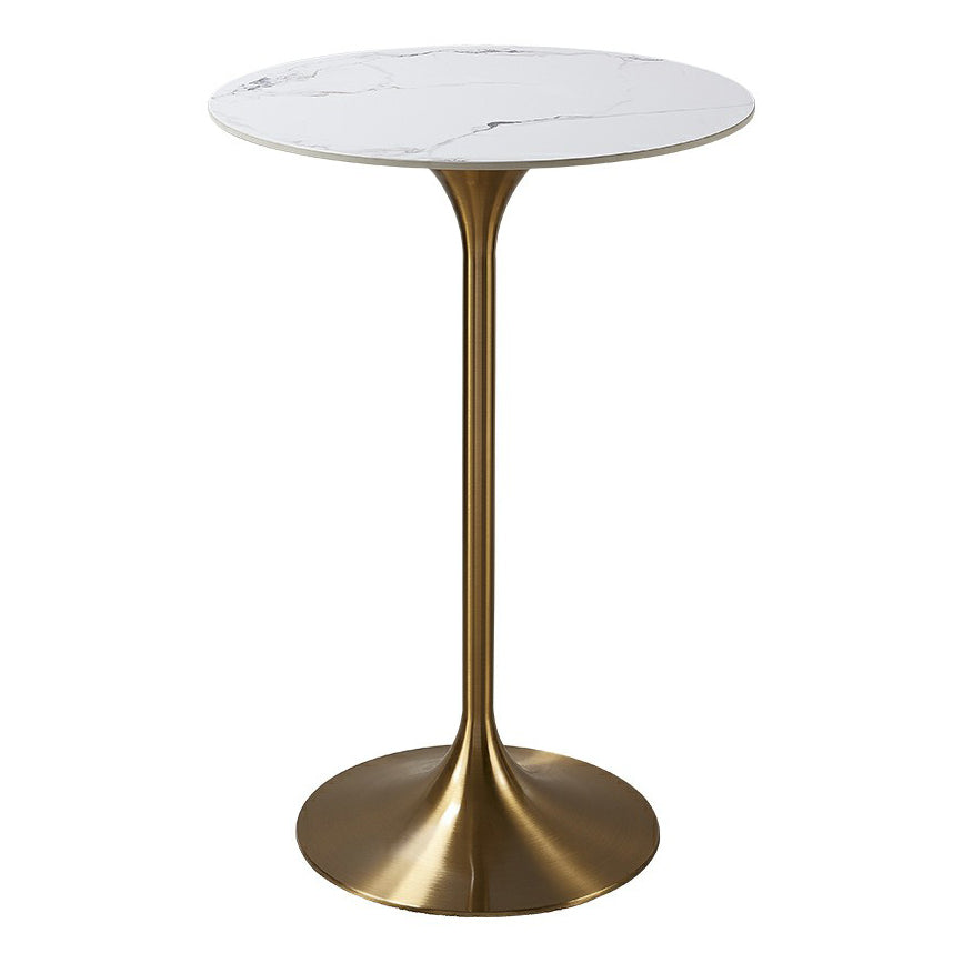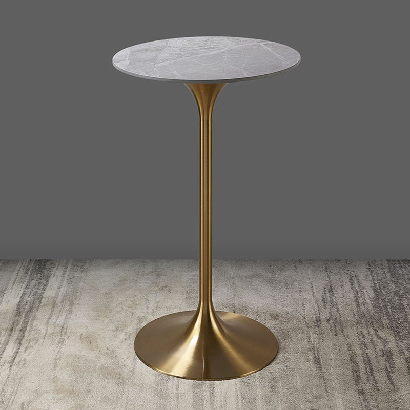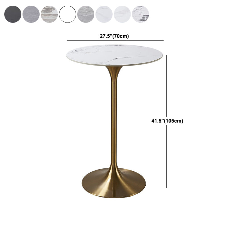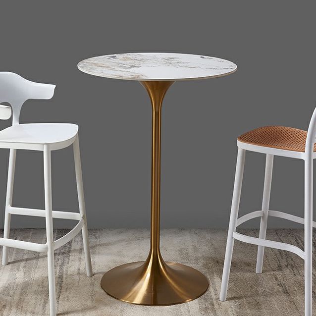 Round Stone Top Bar Table Glam Pub Table with Gold Metal Pedestal