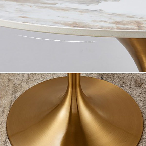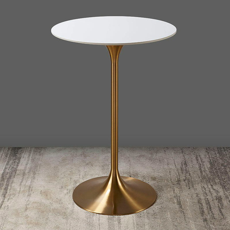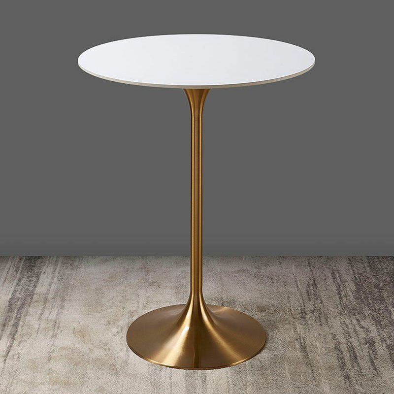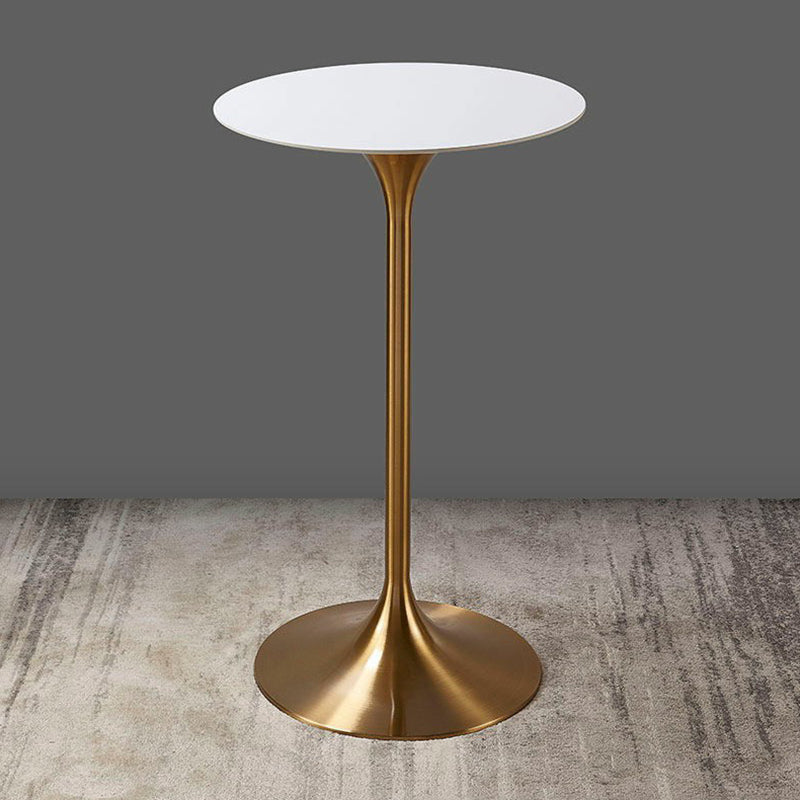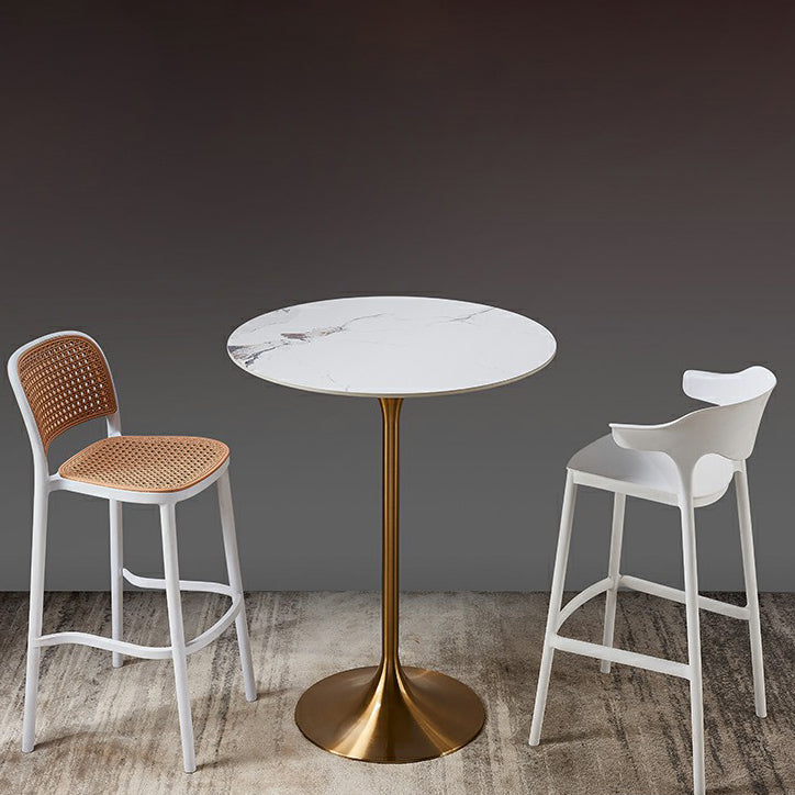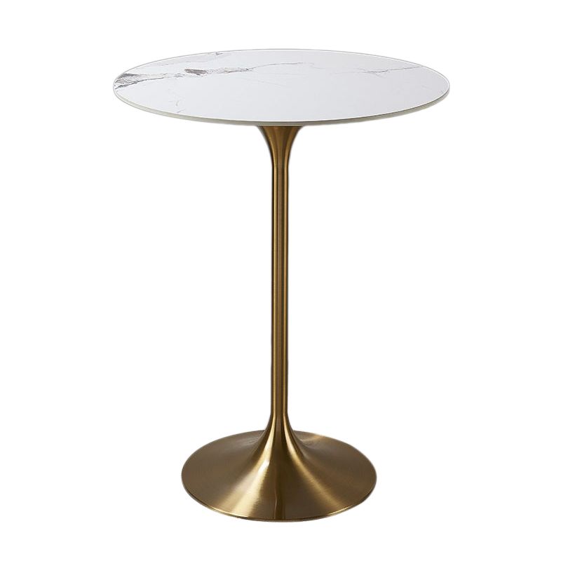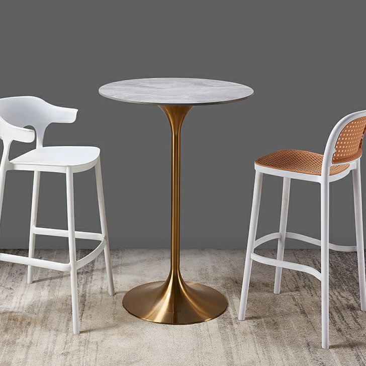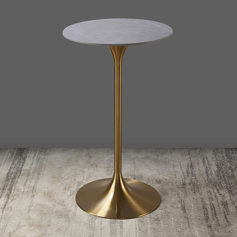 Round Stone Top Bar Table Glam Pub Table with Gold Metal Pedestal
