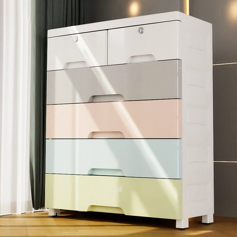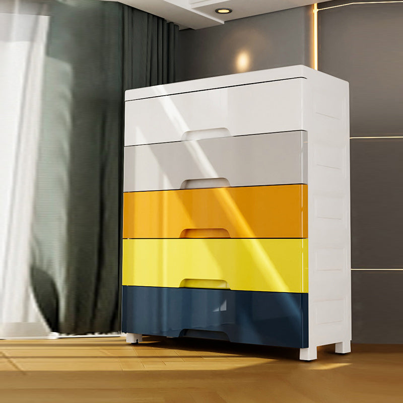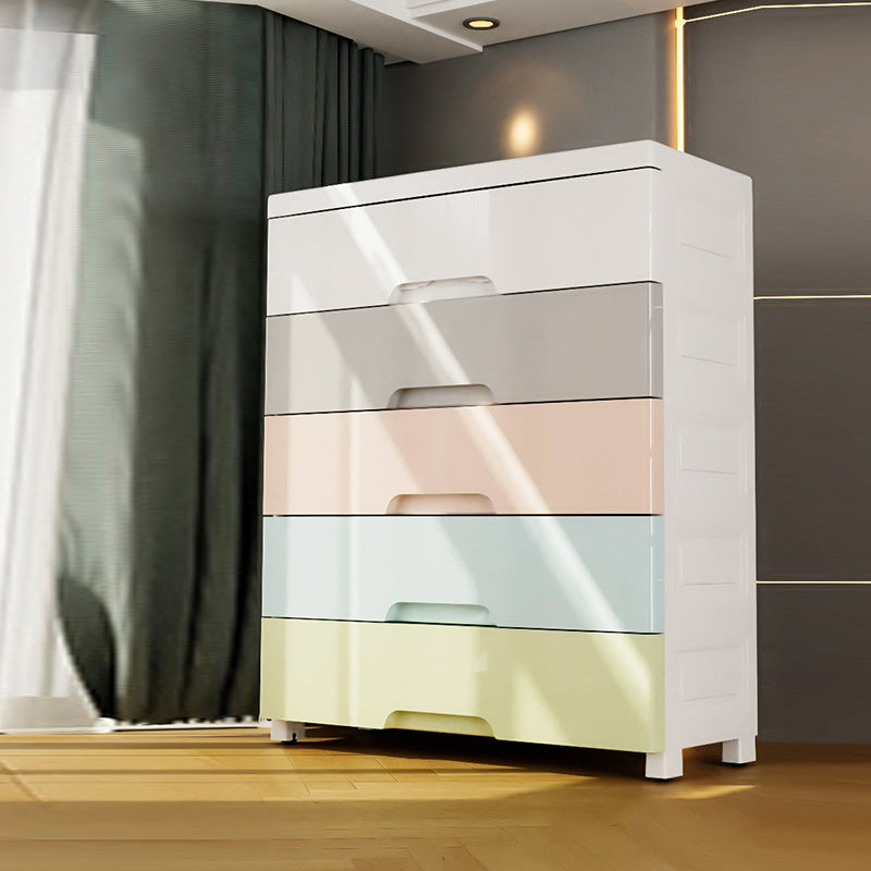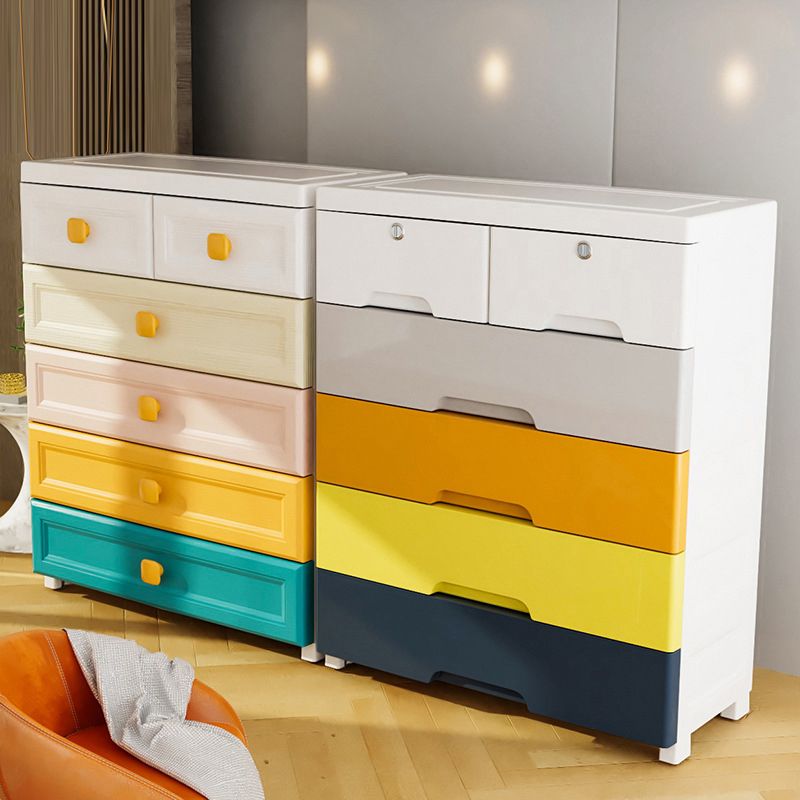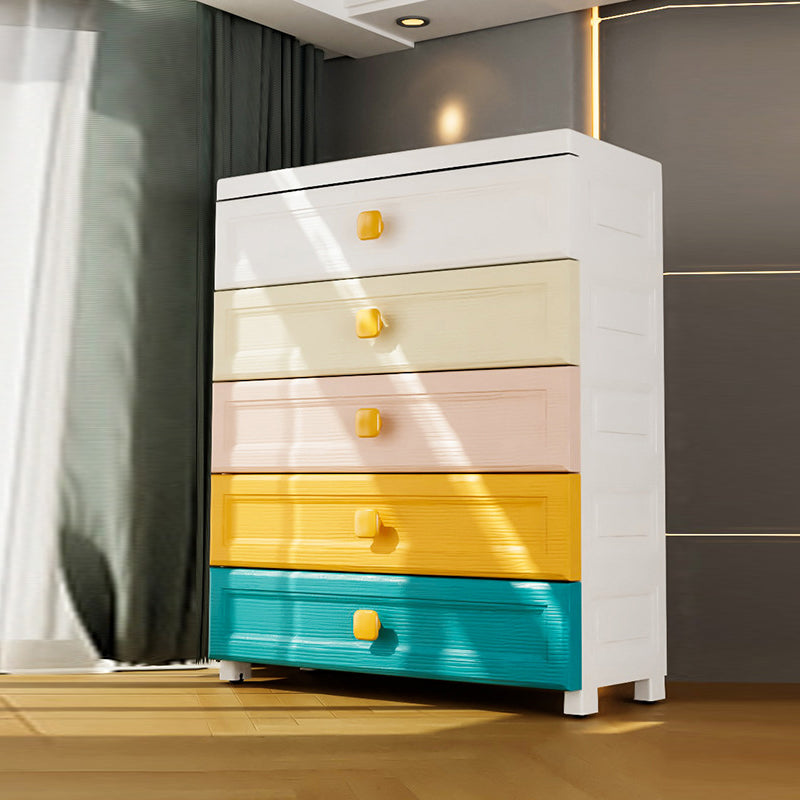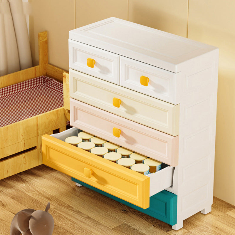 Scandinavian Nursery Dresser Plastic Kids Nightstand with 5/6 Drawers , 10.92 Inch Width