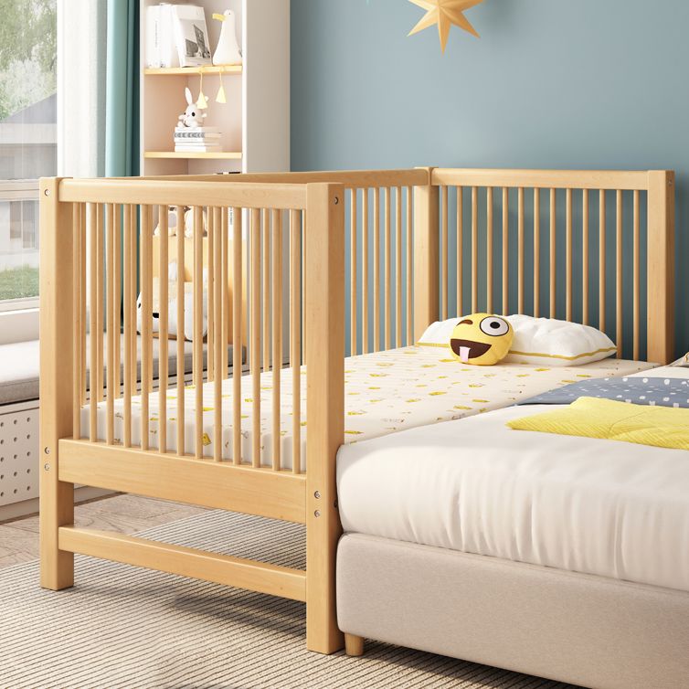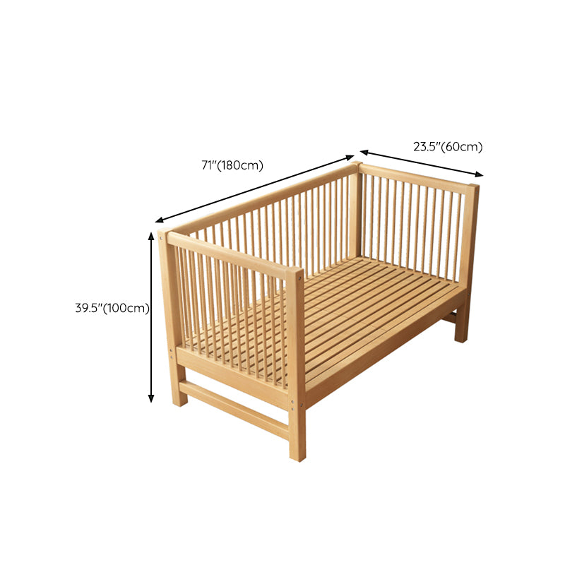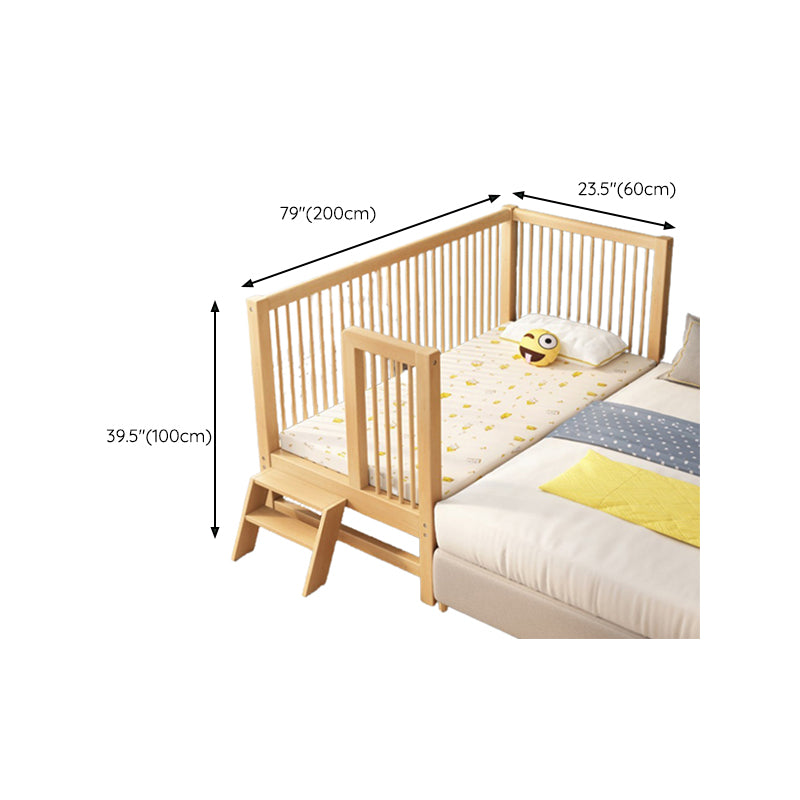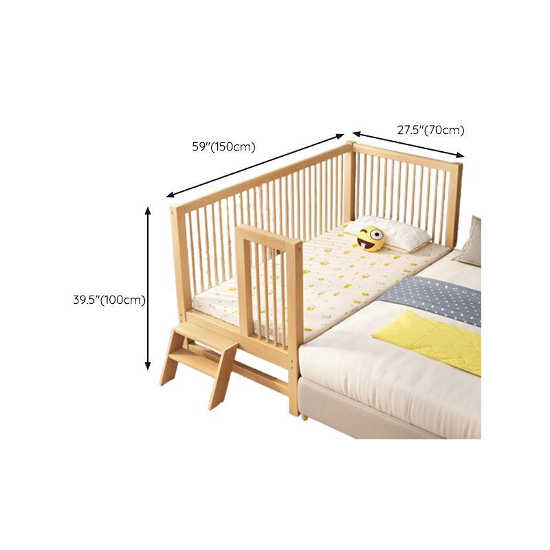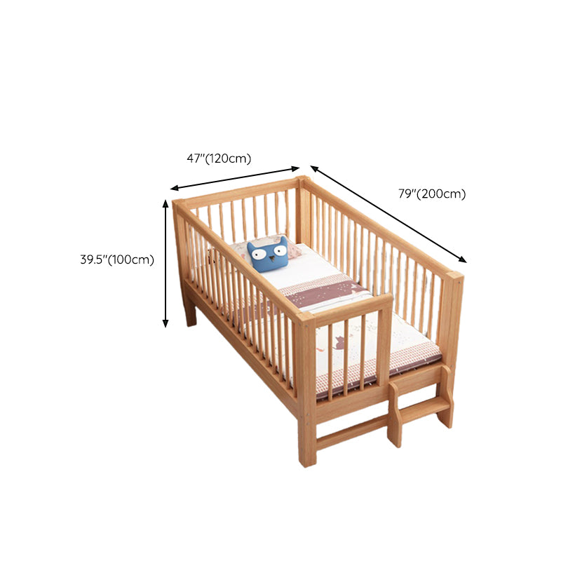 Scandinavian Wood Baby Crib with Guardrail and Mattress, Light Wood Crib