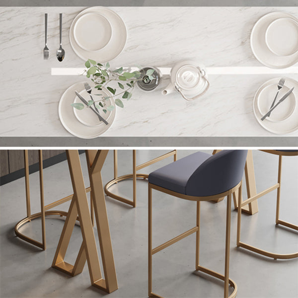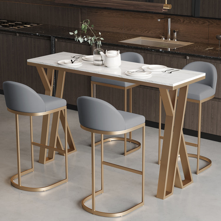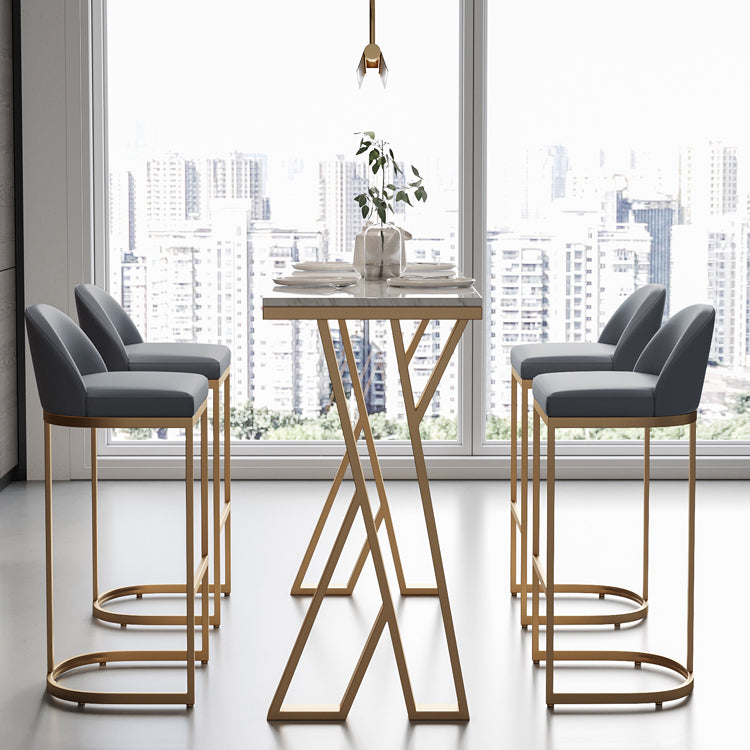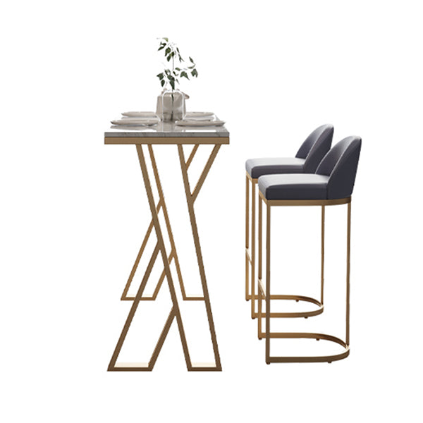 Sintered Stone Top Bar Dining Table luxurious Bar Table with Double Pedestal in gold