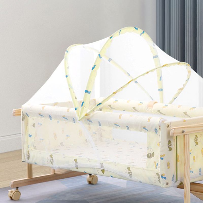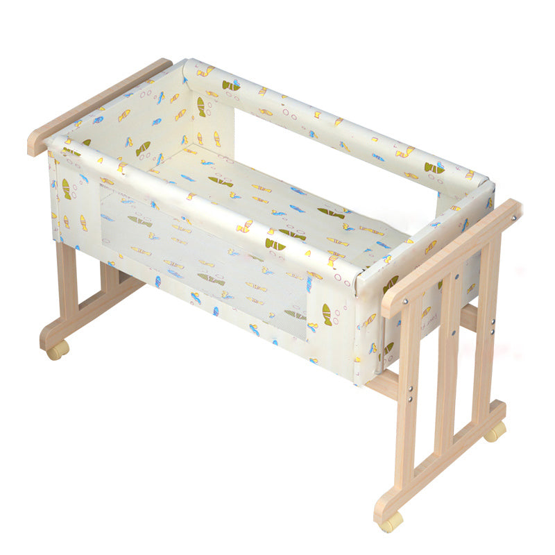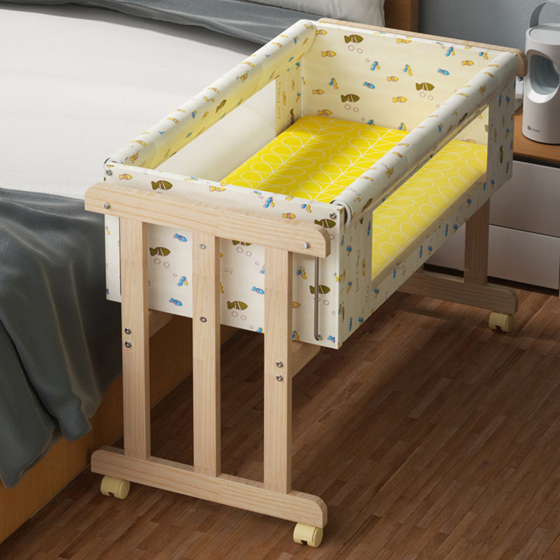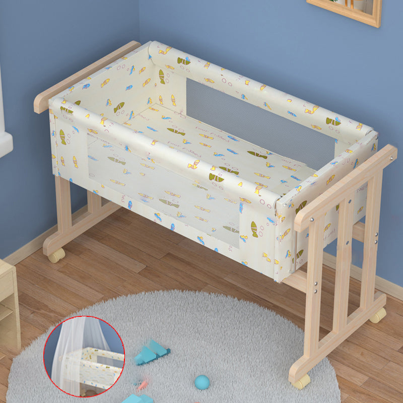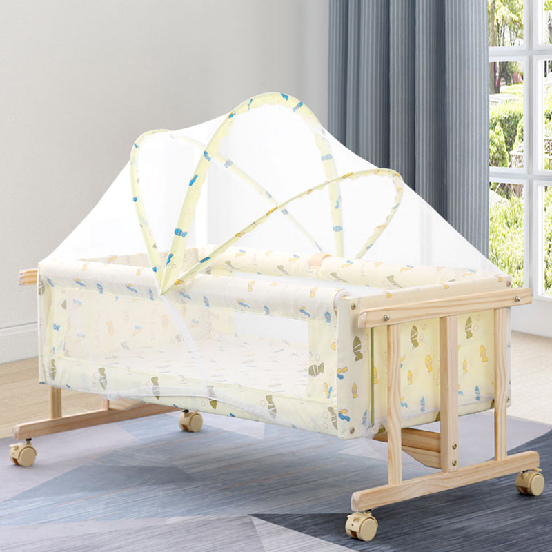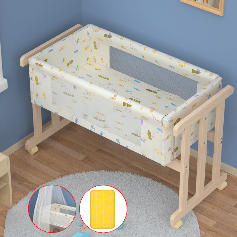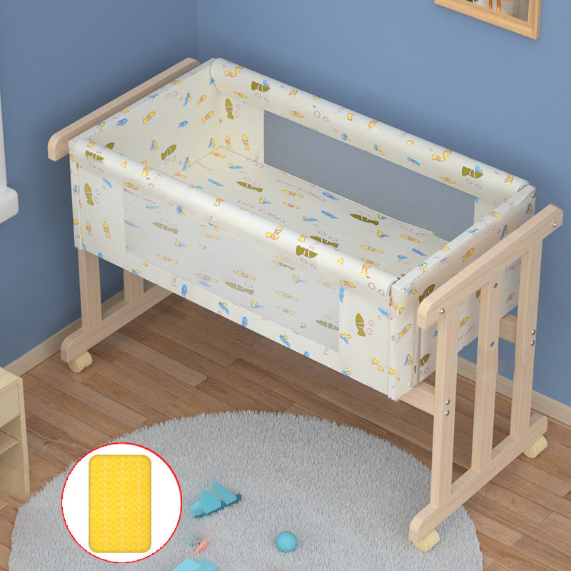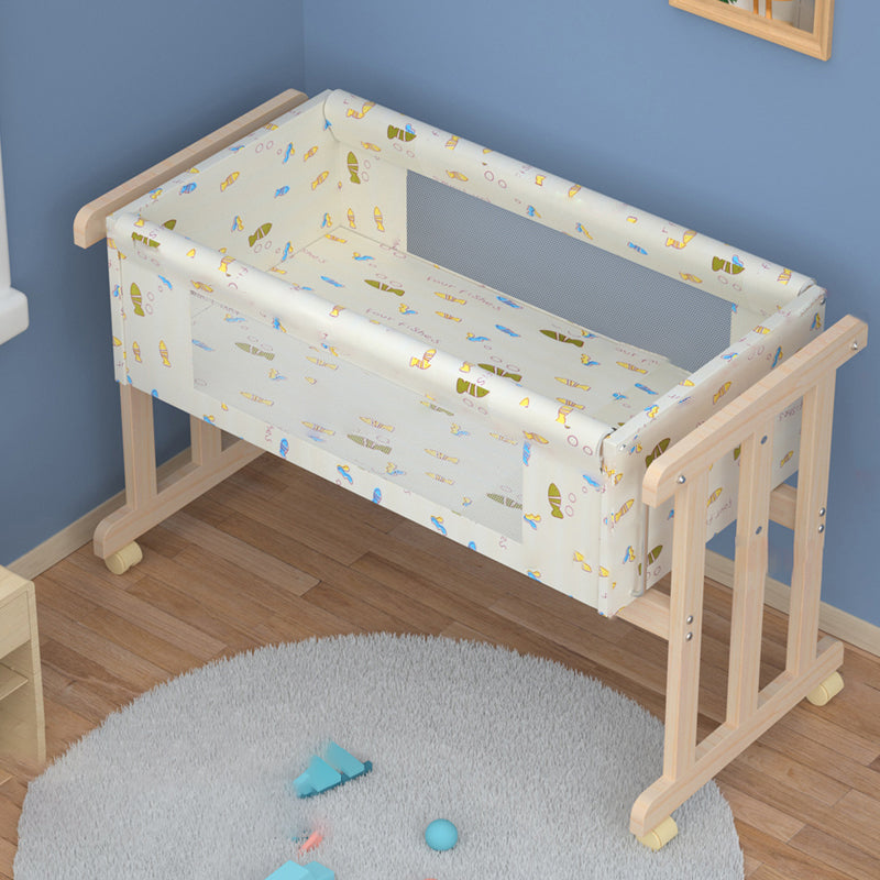 Solid Wood Rectangle Bassinet Gliding Crib Cradle with Upholstered for Baby