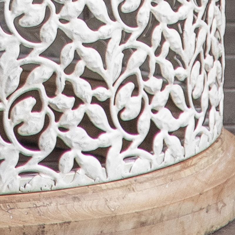 Solid Wood Round Top Side End Table Metal Drum End Table for Living Room