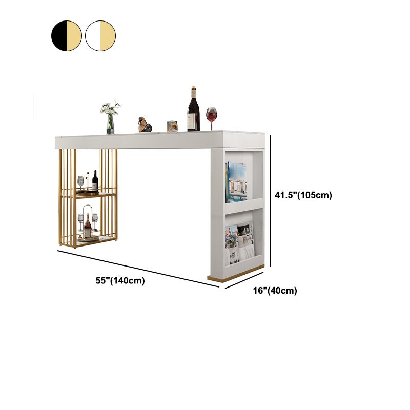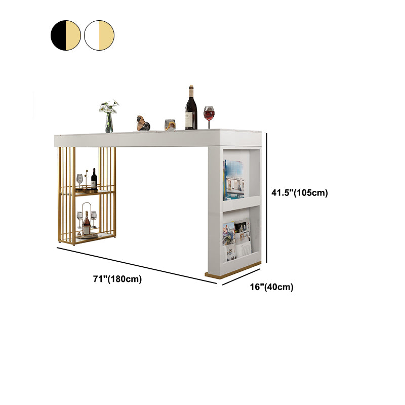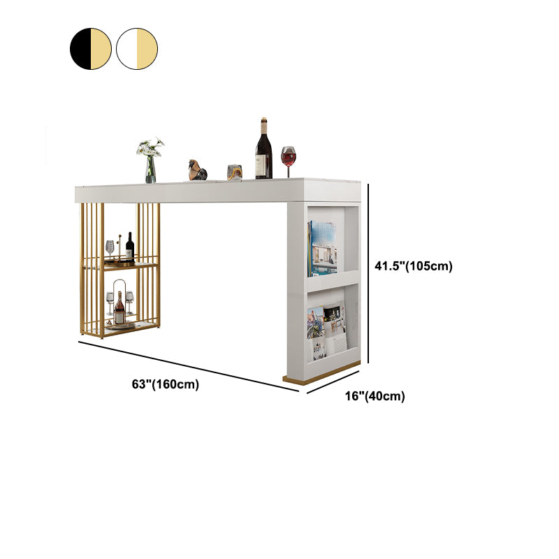 Stone Bar Dining Table Glam Rectangle Bar Table with Storage Racks for Kitchen