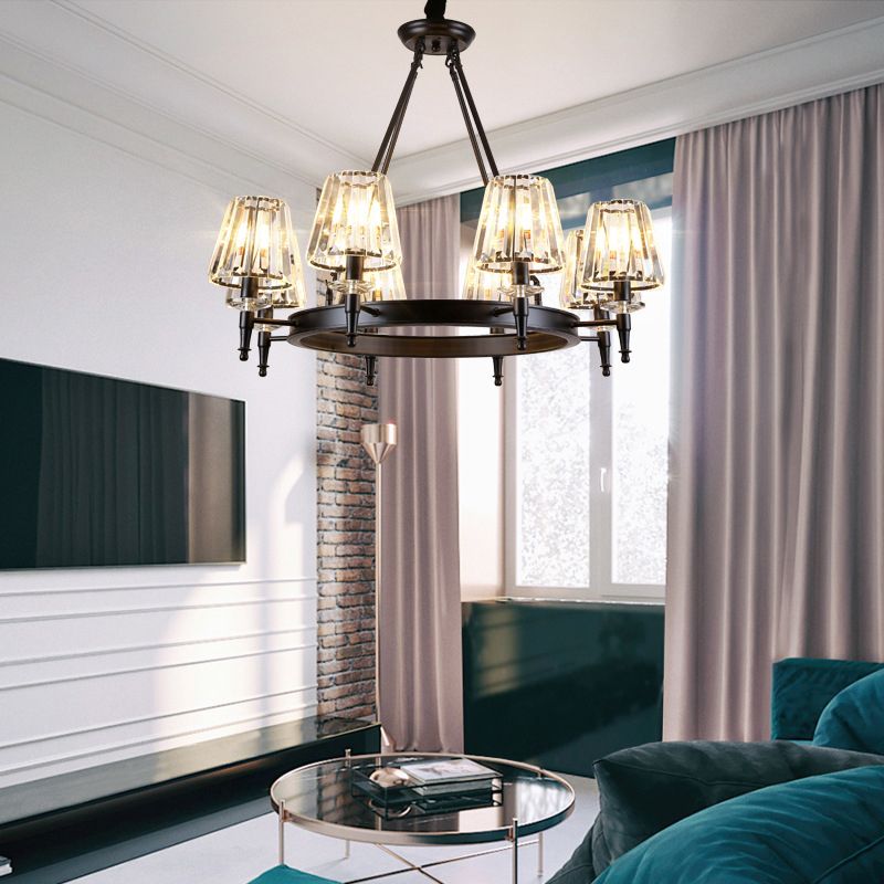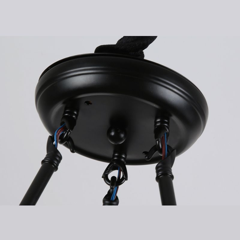 Traditional Style Crystal Chandelier Light Iron Vintage Suspension Lighting Fixture in Black for Living Room