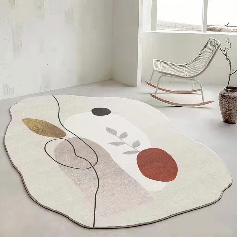 White Casual Rug Polyester Color Lump Rug Washable Rug for Drawing Room