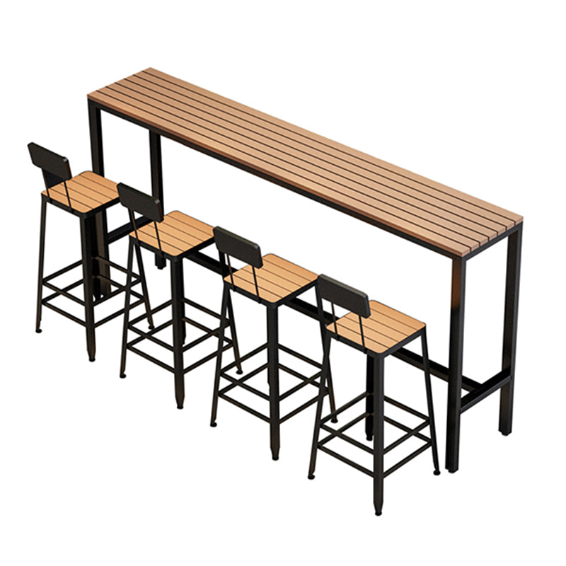 Wood Bar Dining Table Modern Rectangle Bar Table with Trestle Pedestal for Cafe Balcony