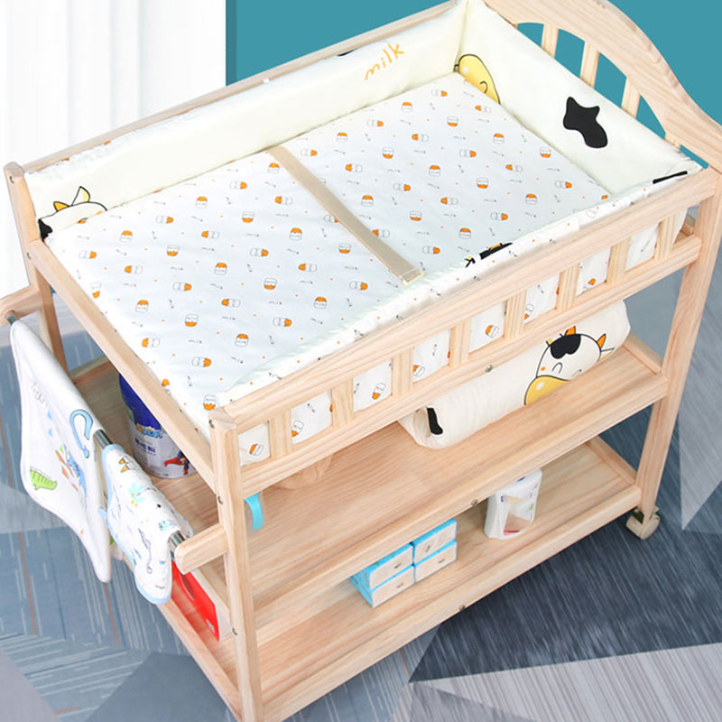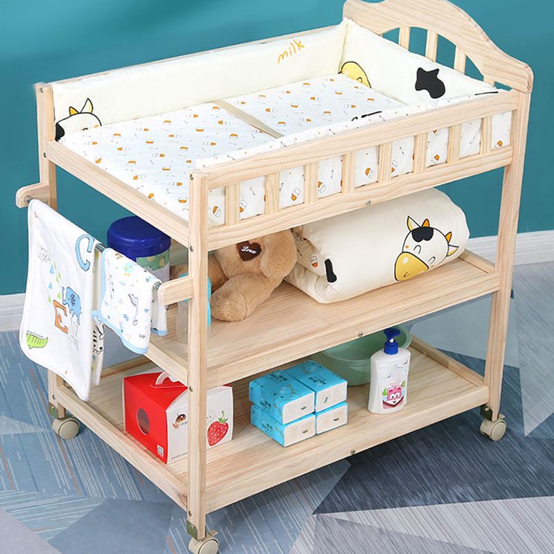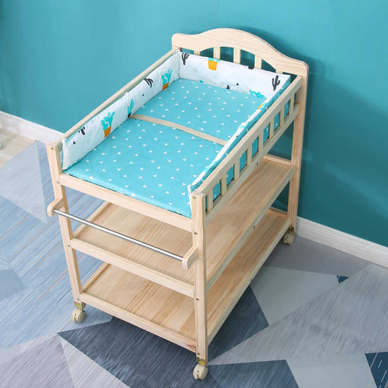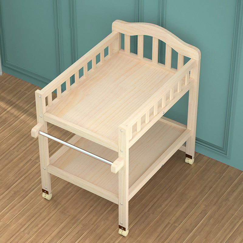 Wooden Changing Table for Home, Movable Baby Changing Table with Safety Rails